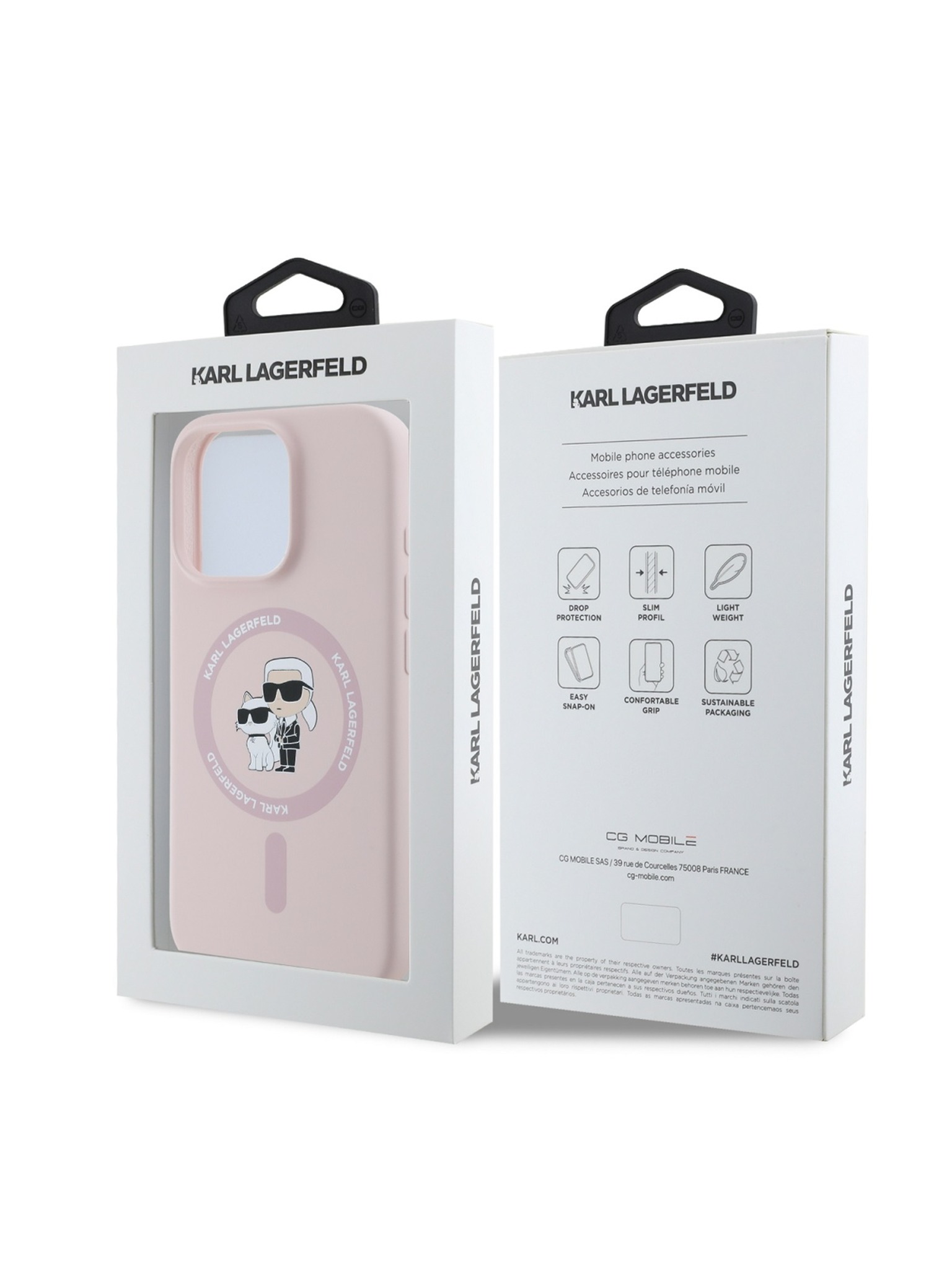 Karl Lagerfeld IML K&CH Heads Opakované Logo MagSafe Zadný Kryt pre iPhone 16 Pro Pink