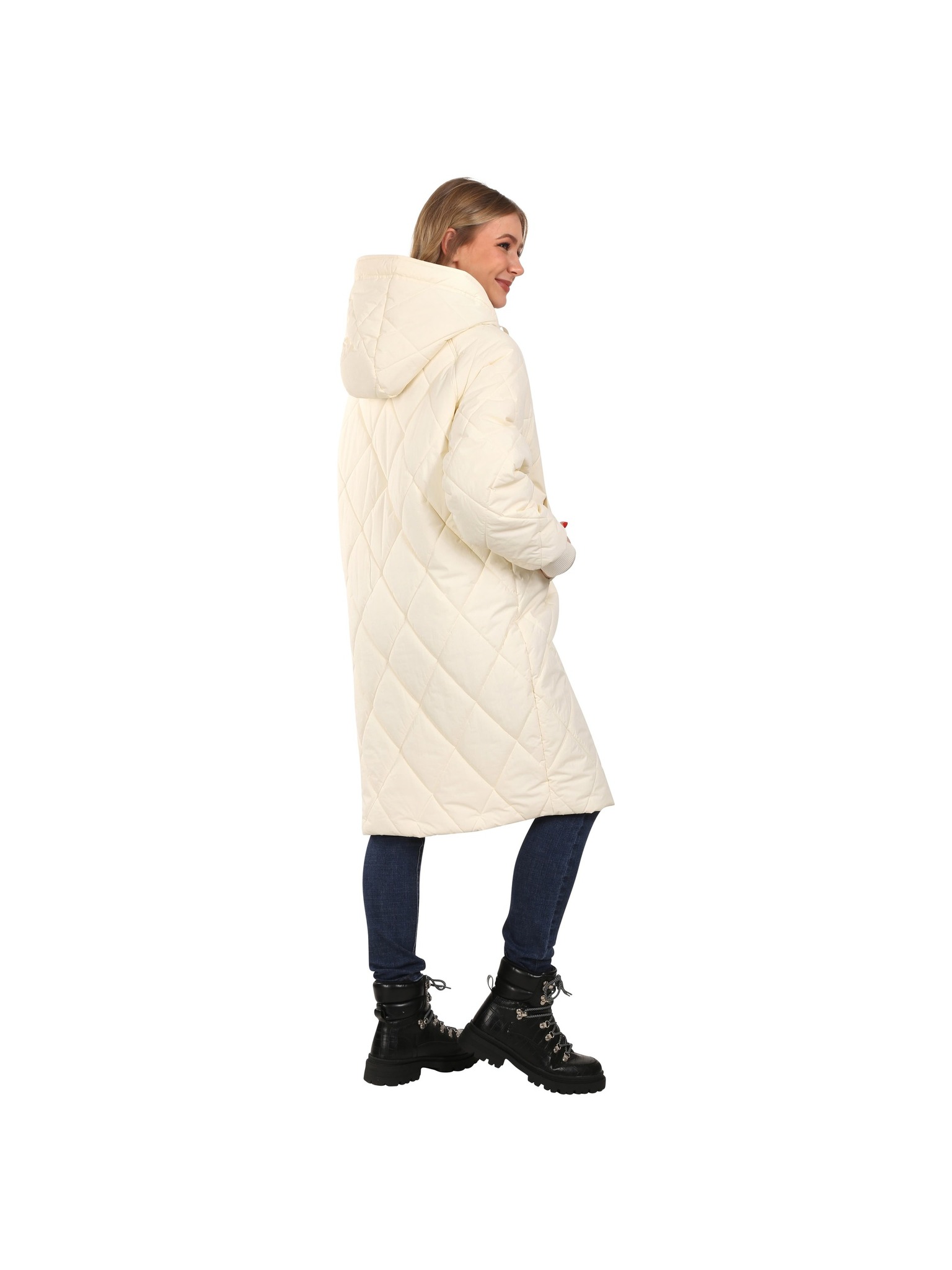 Krémový dámsky prešívaný kabát s umelým kožúškom ORSAY