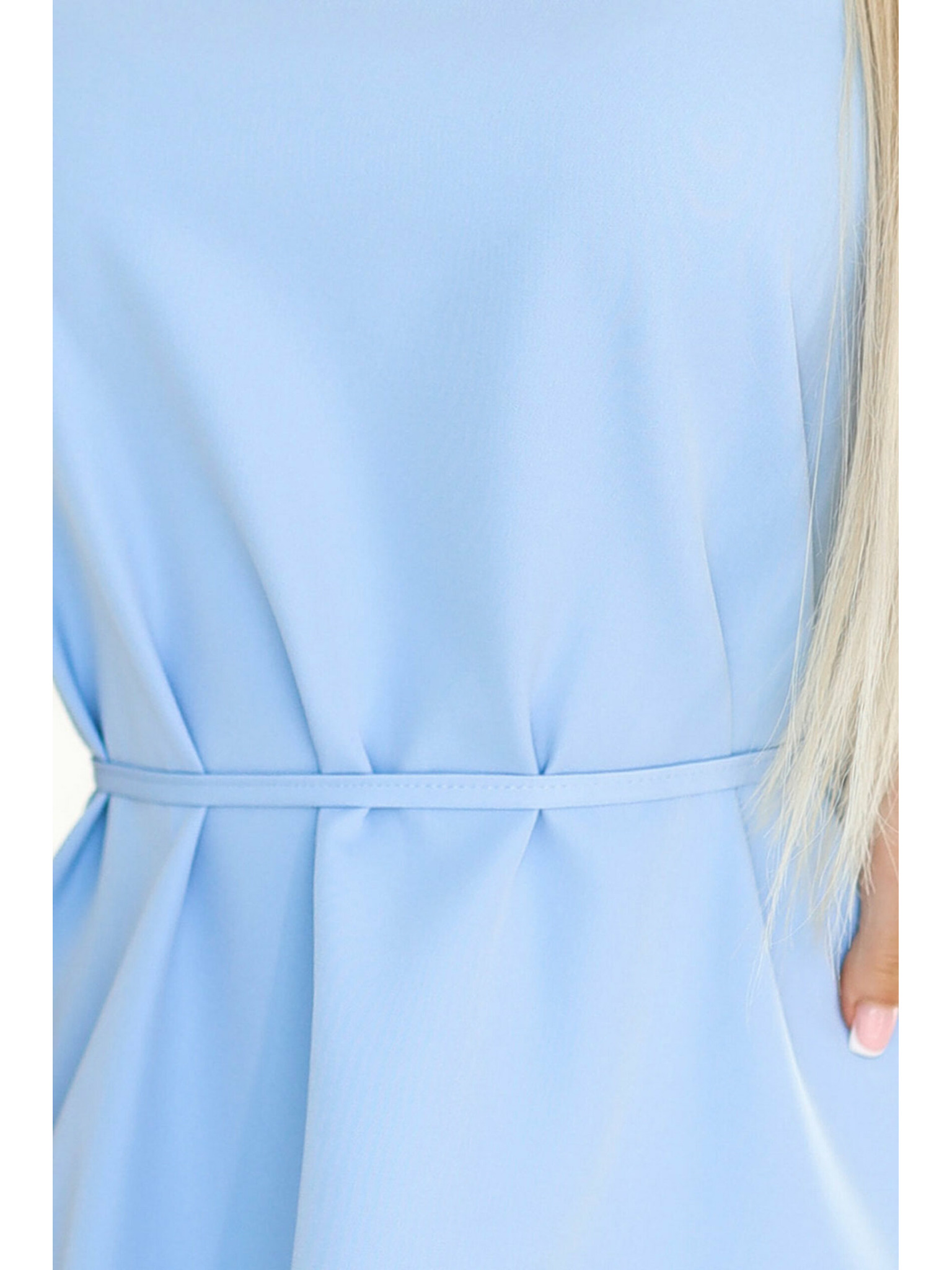 318-8 Elegantné midi šaty s pekným výstrihom - svetlo modré
