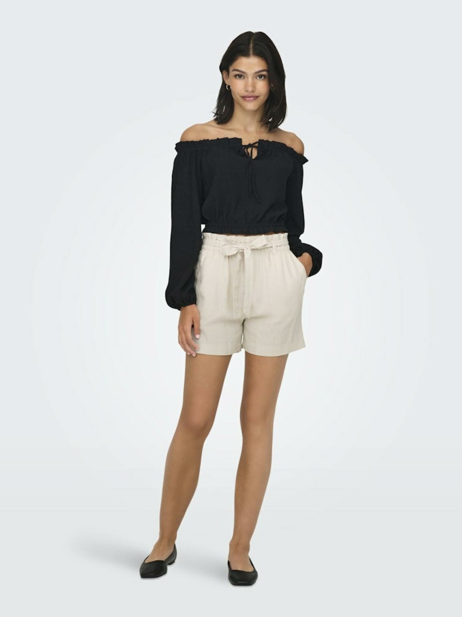 Krémové dámske plátenné šortky JDY Say
