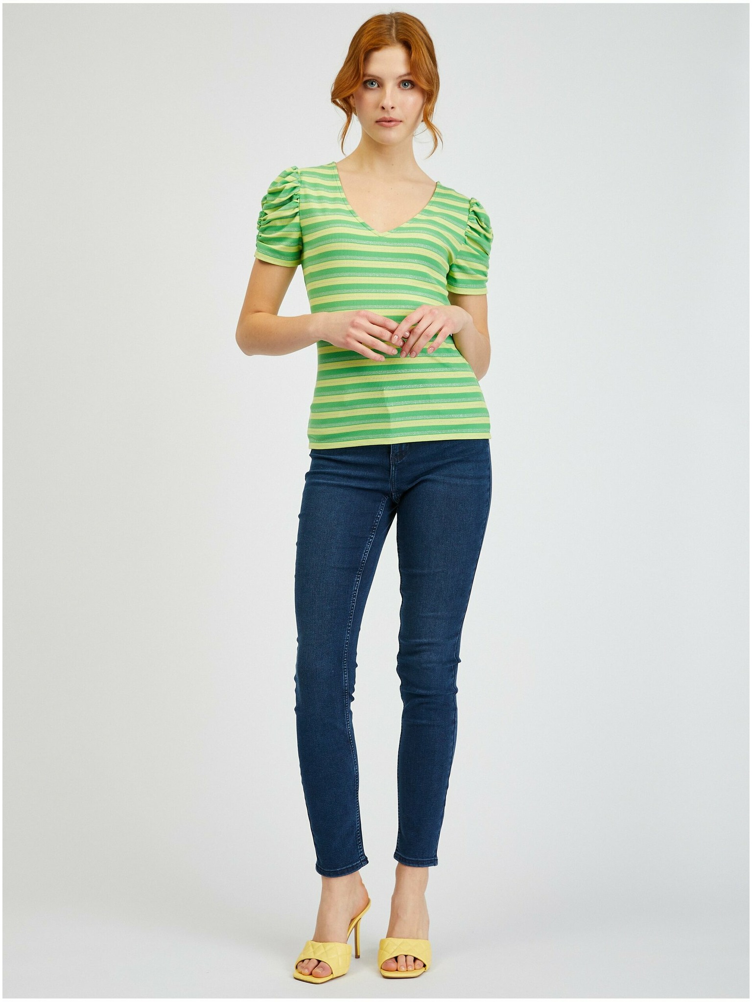 Žlté dámske pruhované polo tričko ORSAY