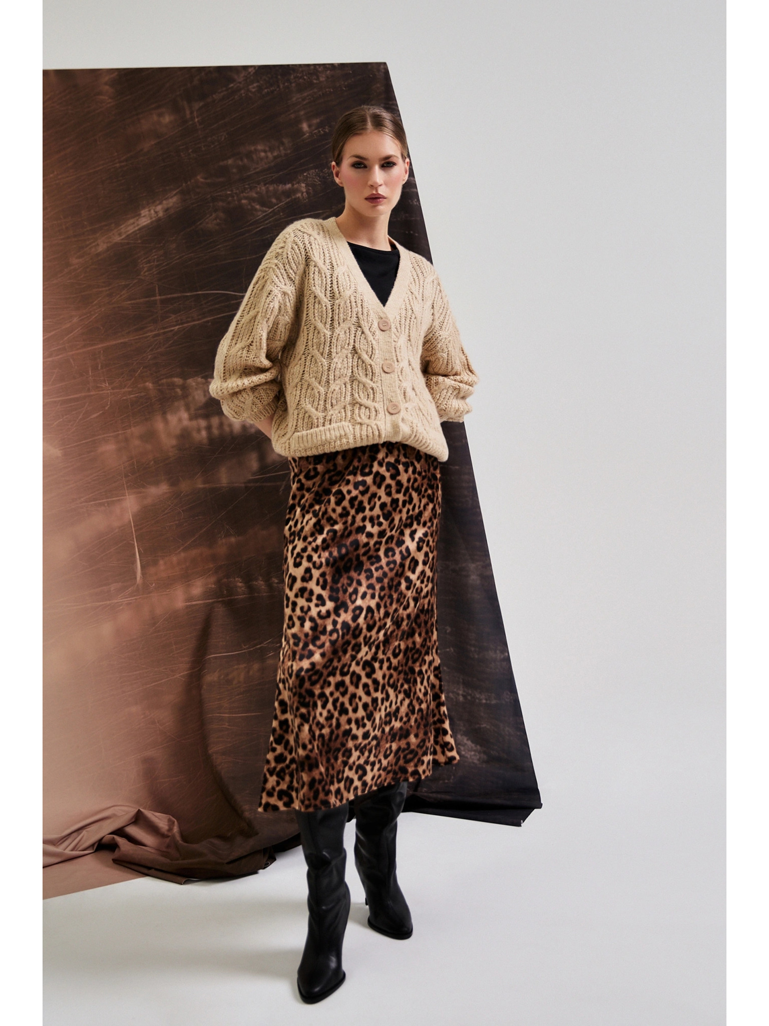 Hnedá dámska vzorovaná midi sukňa ORSAY