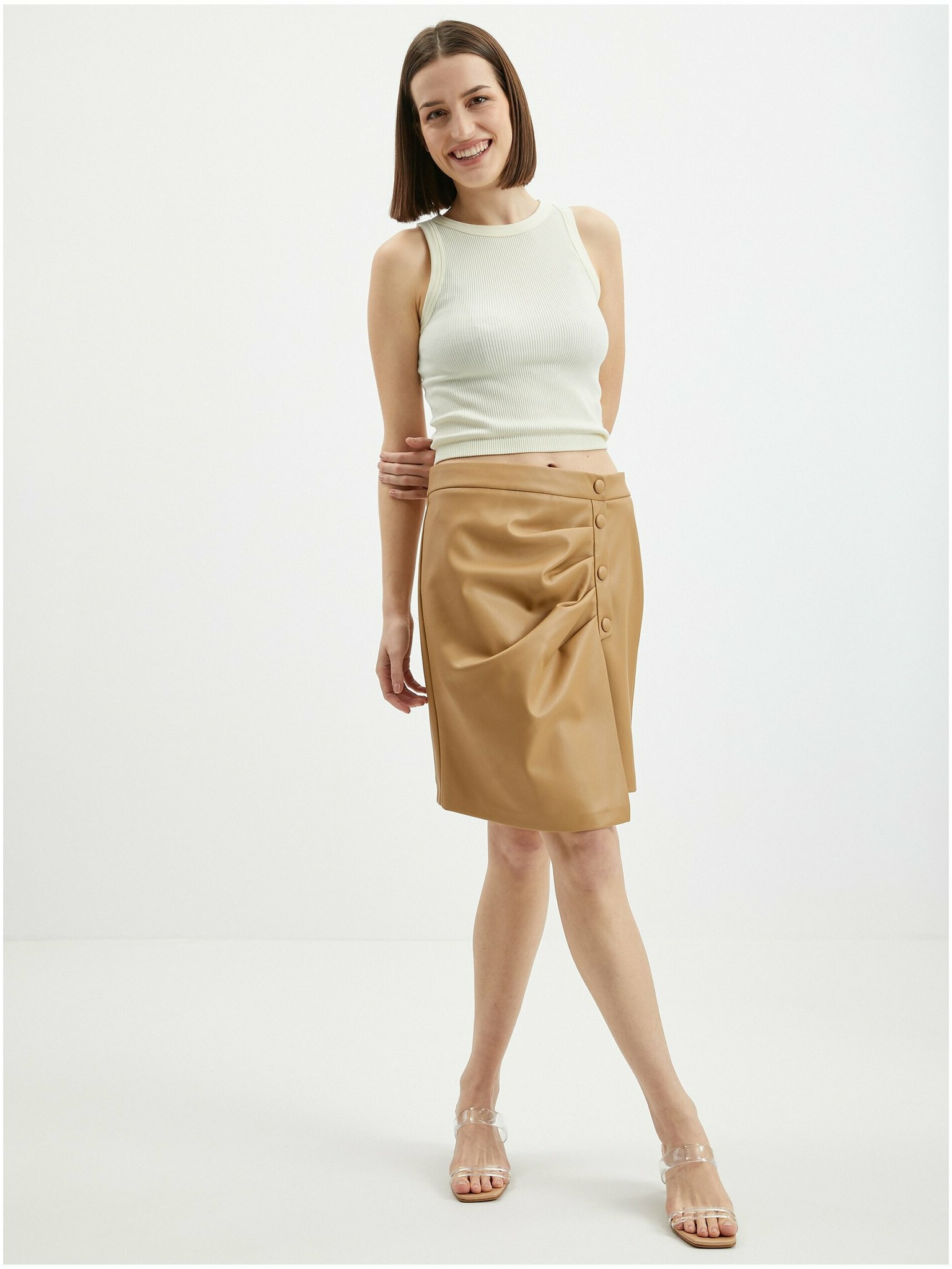 Svetlohnedá dámska koženková sukňa ORSAY