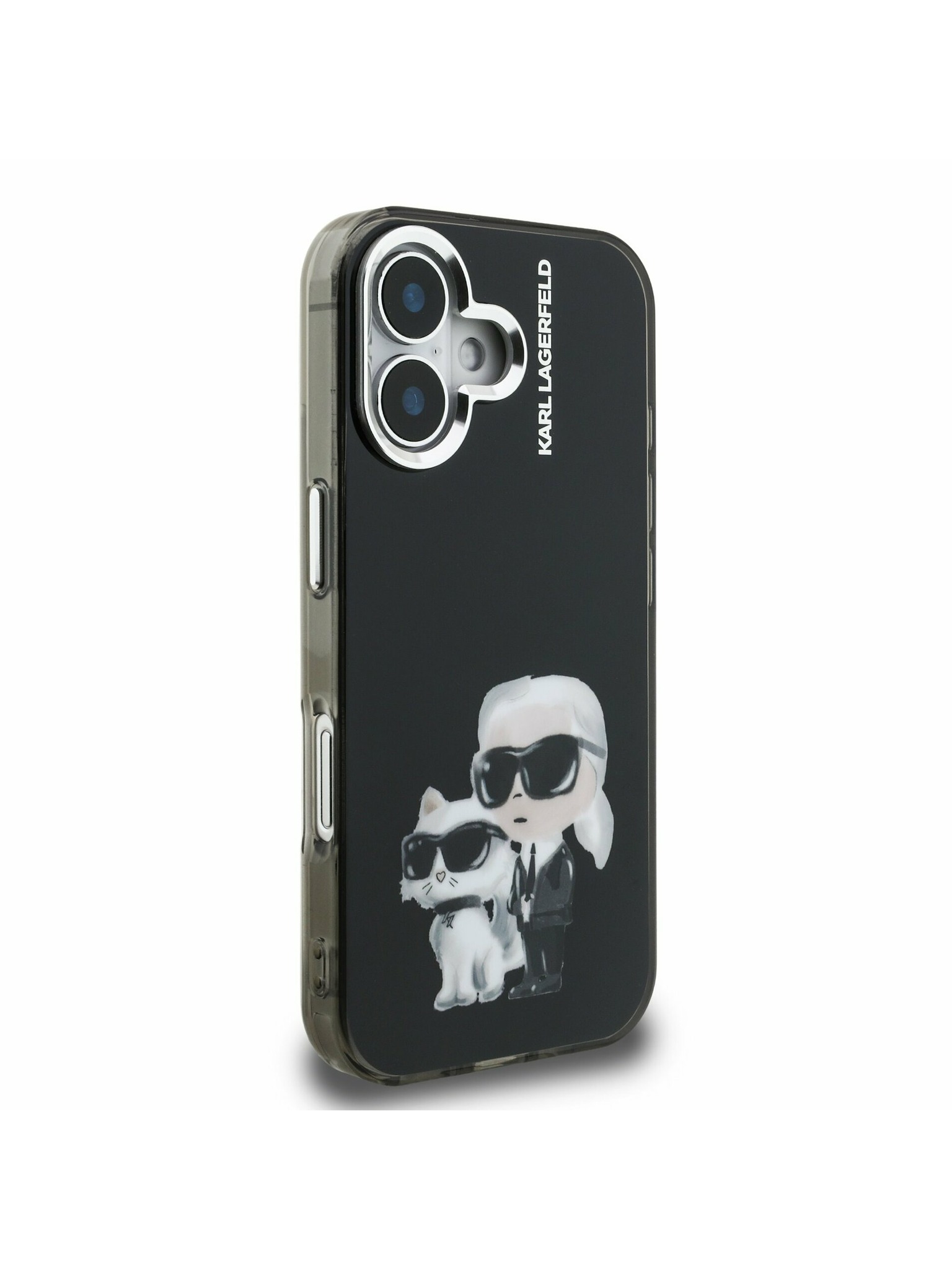 Karl Lagerfeld IML Trblietavý Karl a Choupette Náčrt MagSafe Zadný kryt pre iPhone 16 Čierny