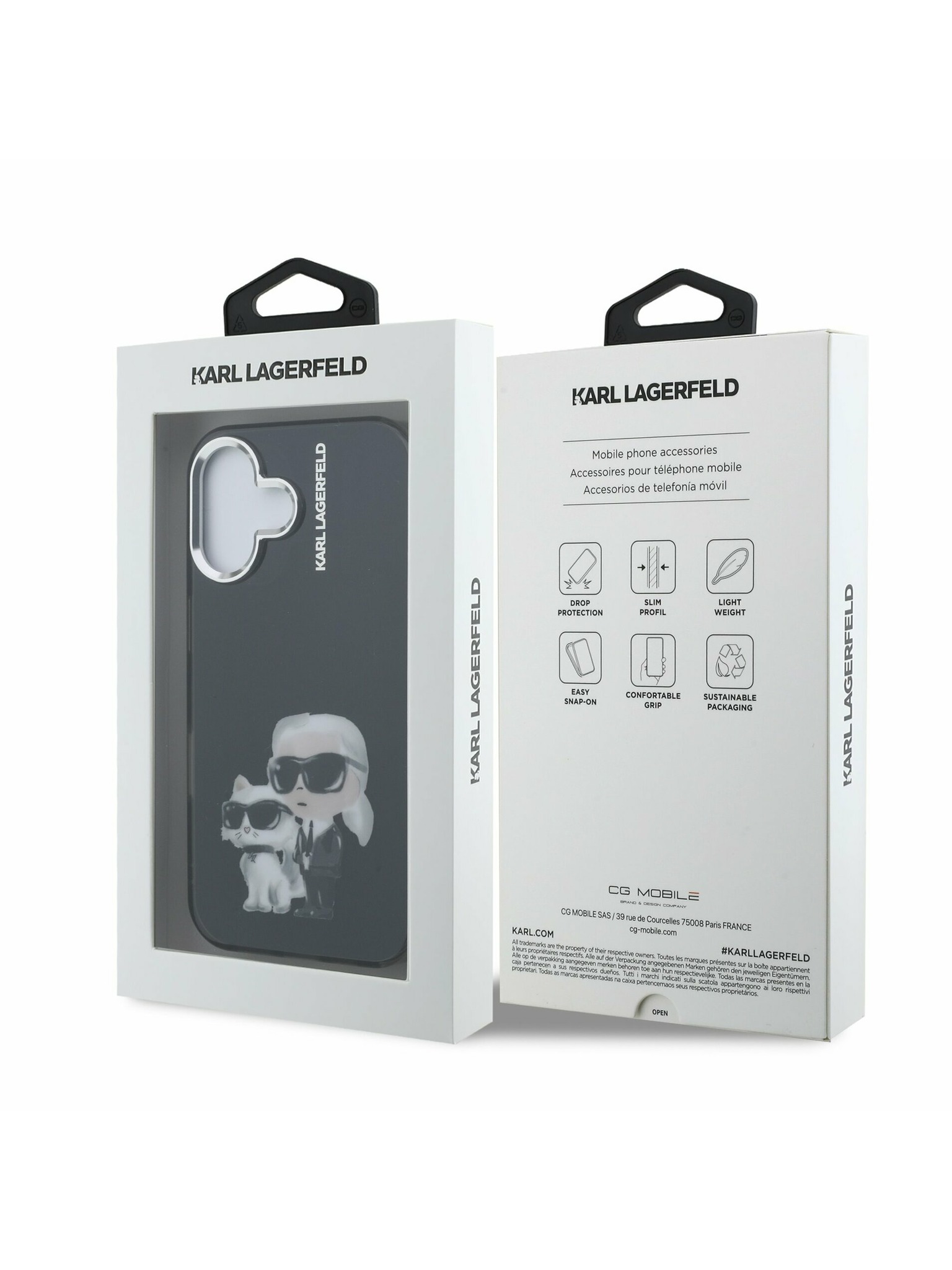 Karl Lagerfeld IML Aquarelle Karl and Choupette zadný kryt pre iPhone 15 čierny