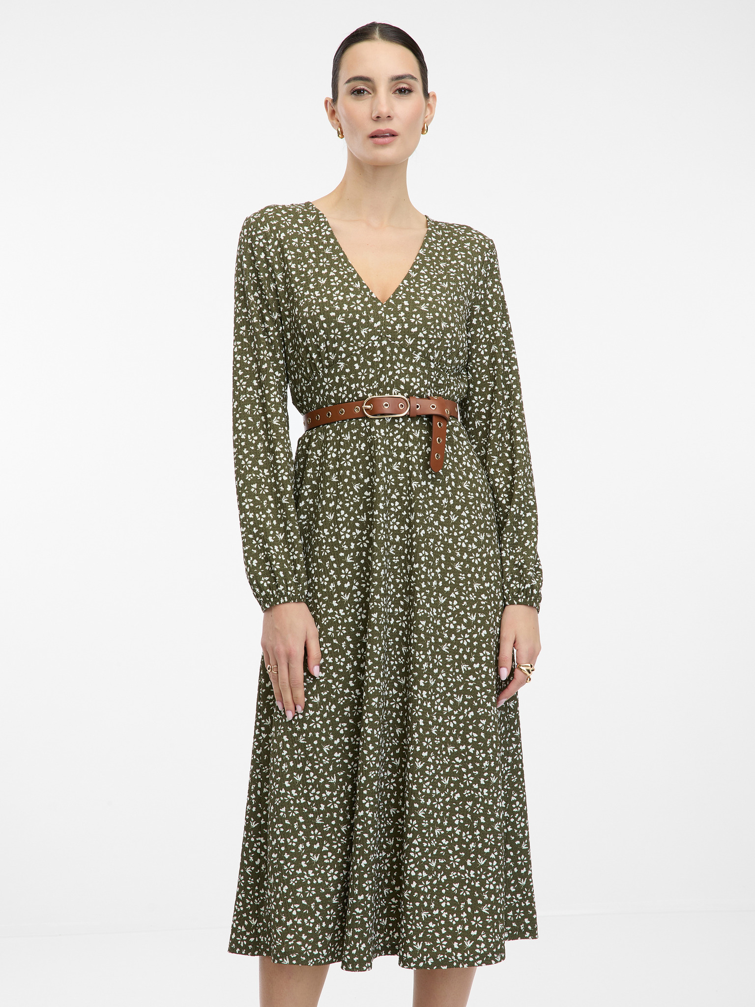 Fialové dámske midi šaty s kvetinovým vzorom ORSAY