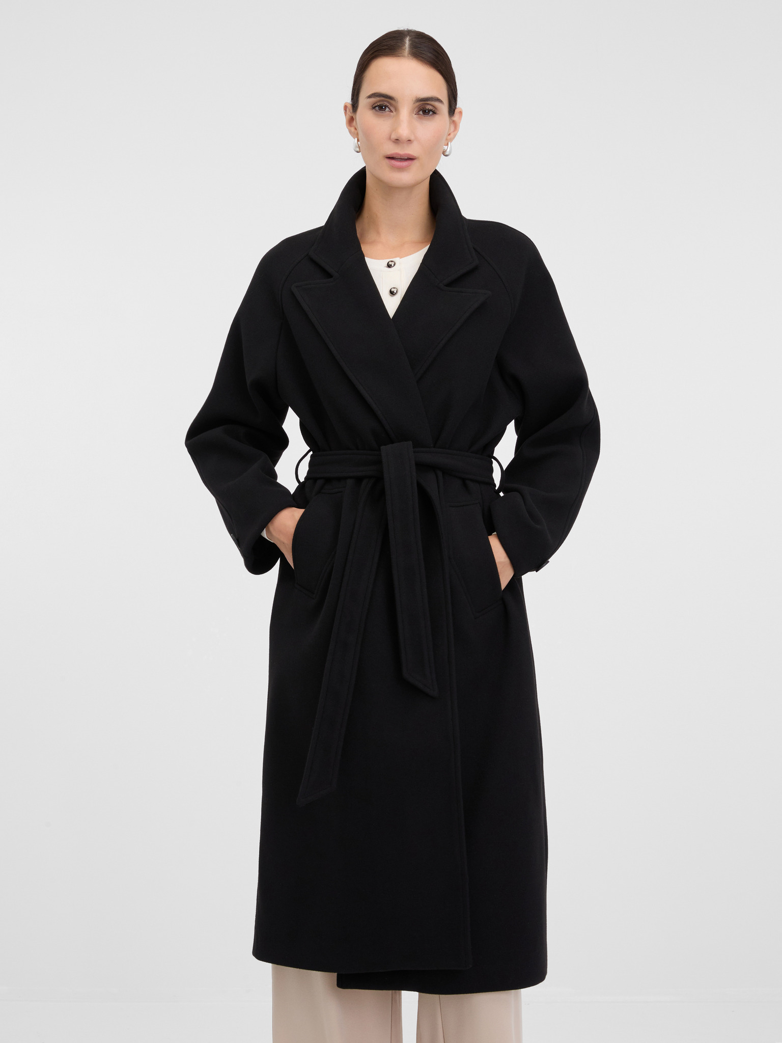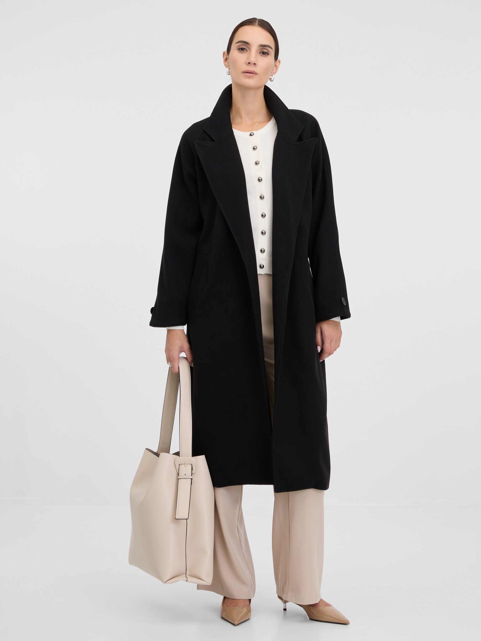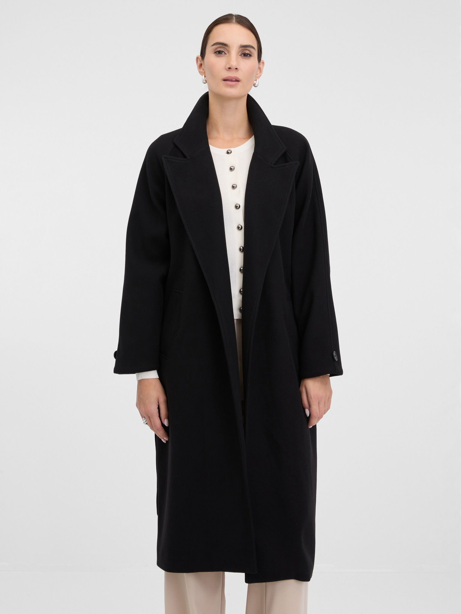 Čierny dámsky kabát s prímesou vlny ORSAY