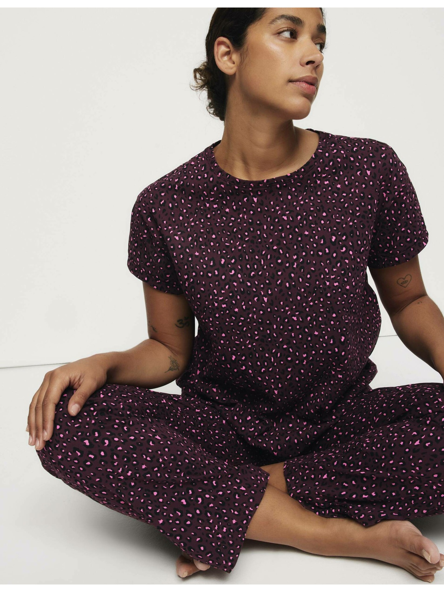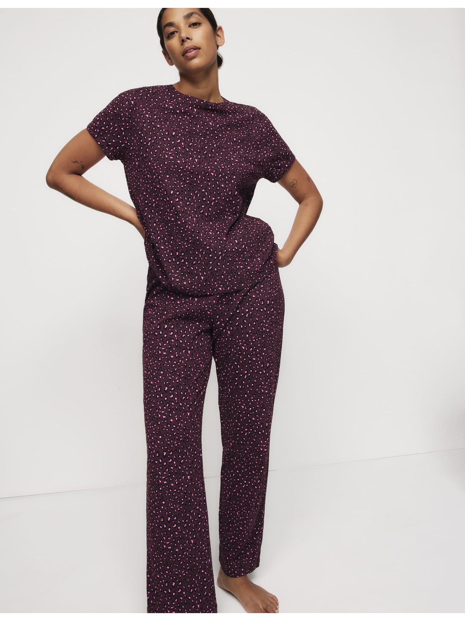 Flísová pyžamová súprava s potlačou hviezd a nohavicami s manžetovým lemom Marks & Spencer čierna