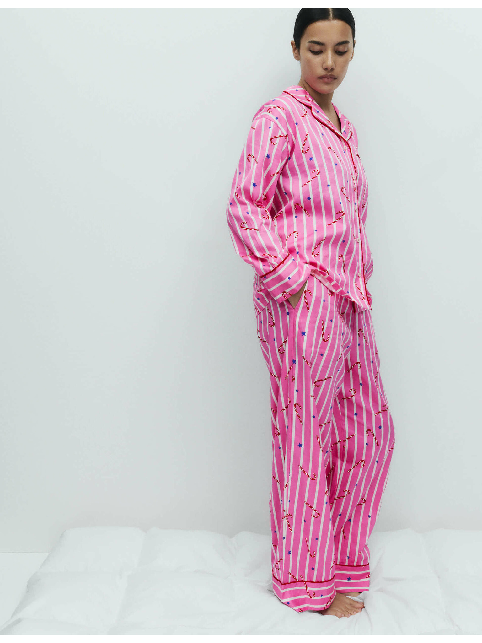 Vianočná pyžamová súprava z čistej bavlny s motívom lízátka Marks & Spencer ružová