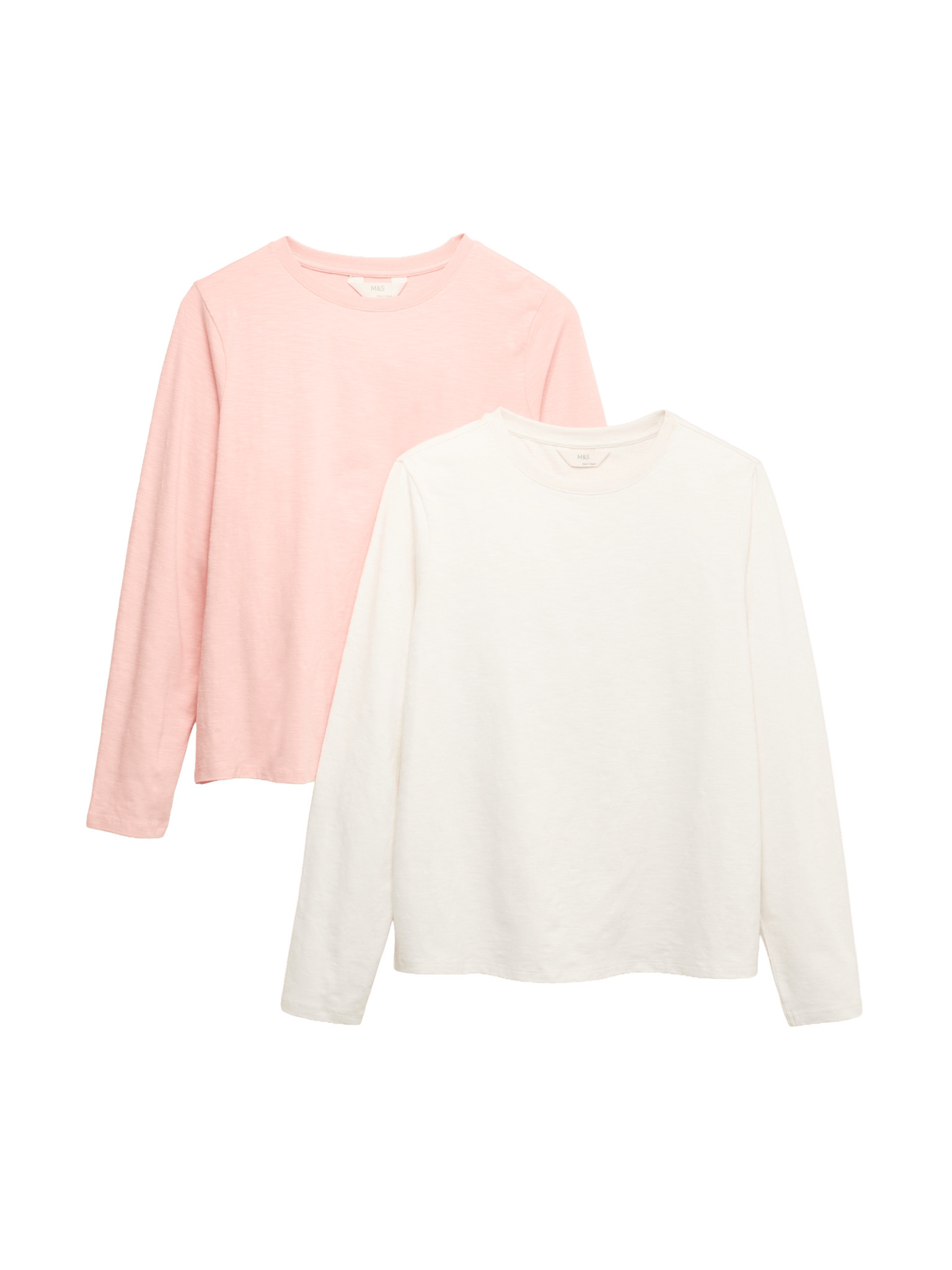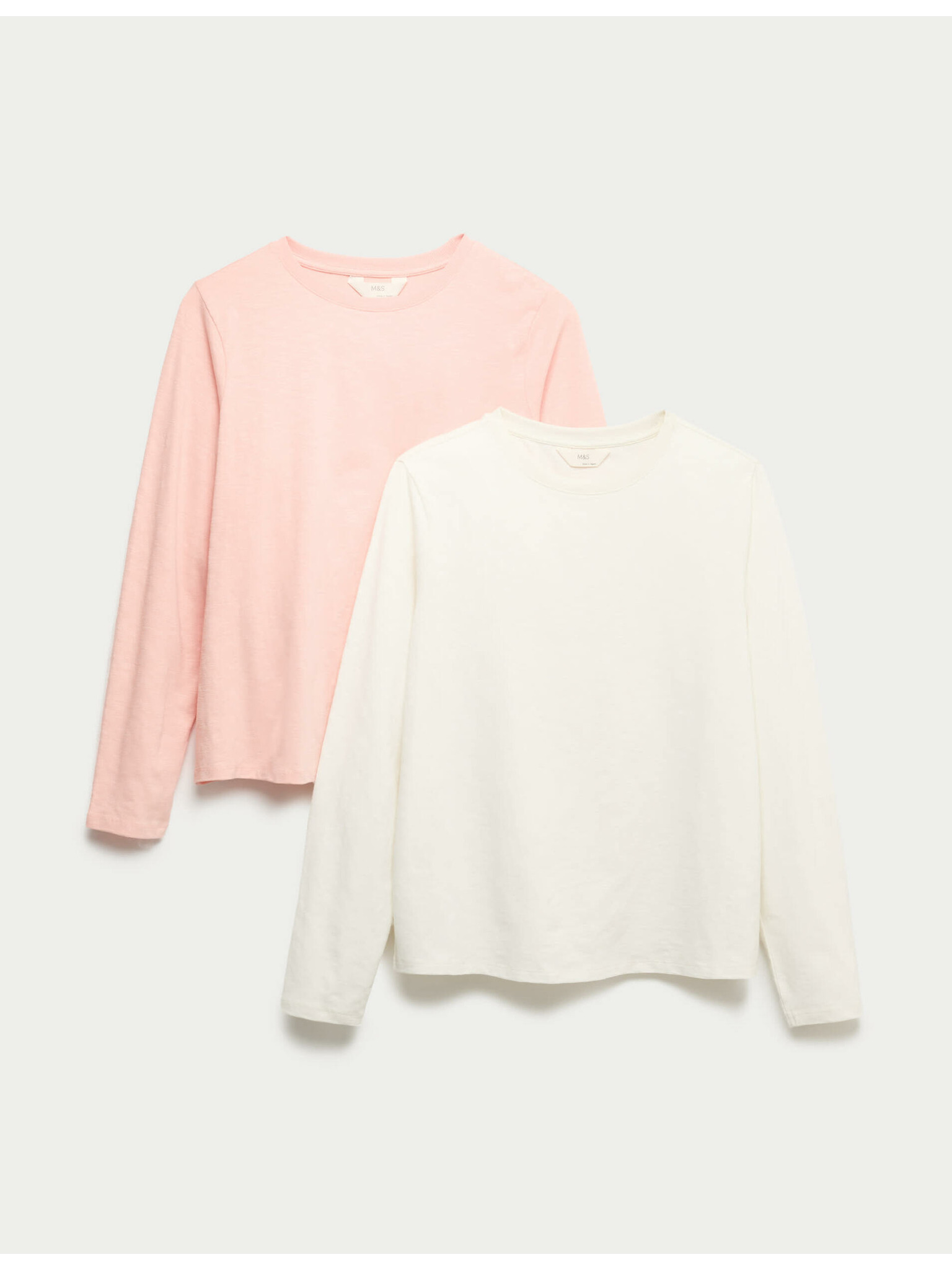 Rebrovaný pyžamový top s výstrihom ku krku a dlhými rukávmi Marks & Spencer smotanová