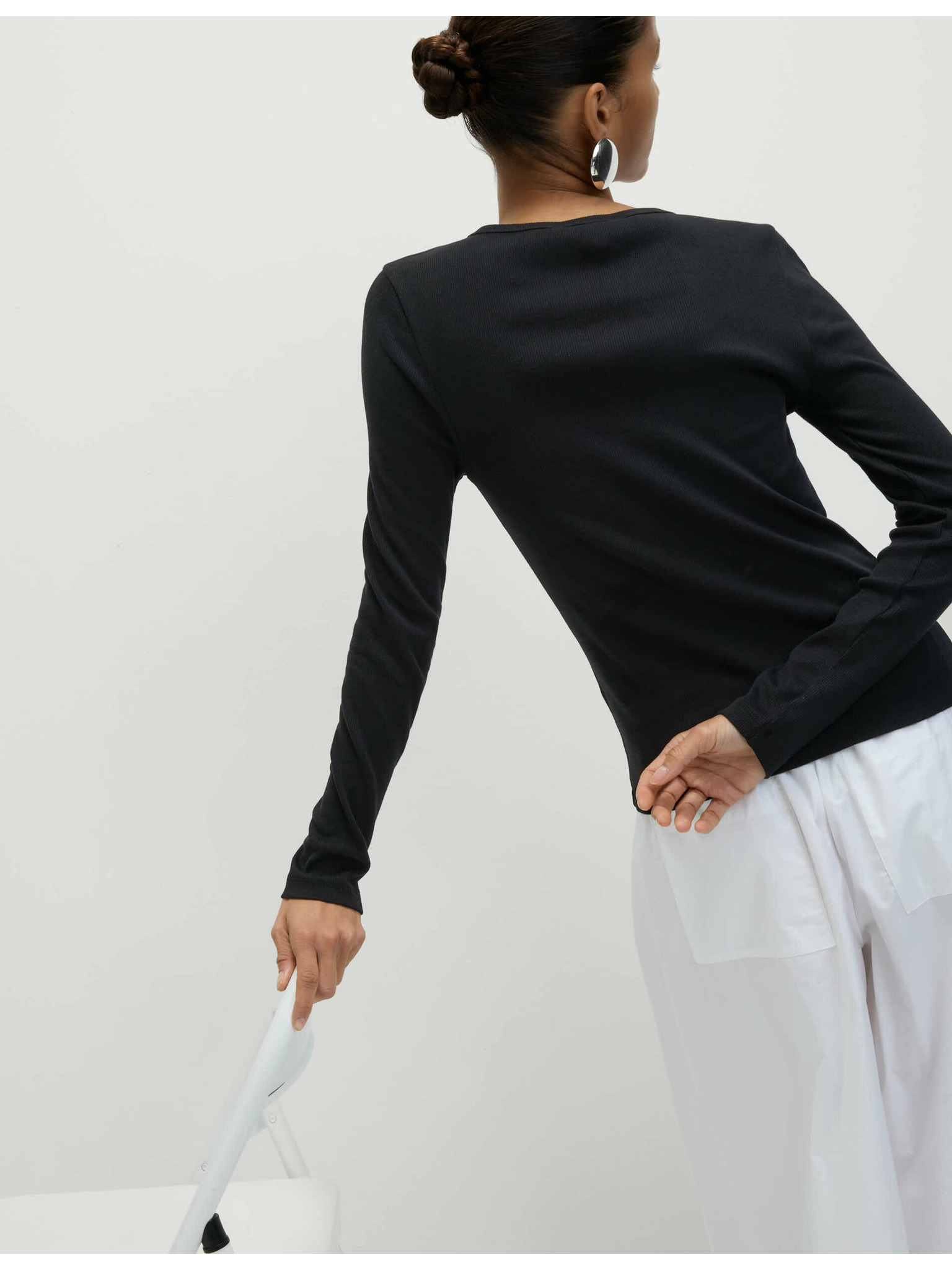 Top s dlhými rukávmi tesného strihu Marks & Spencer čierna
