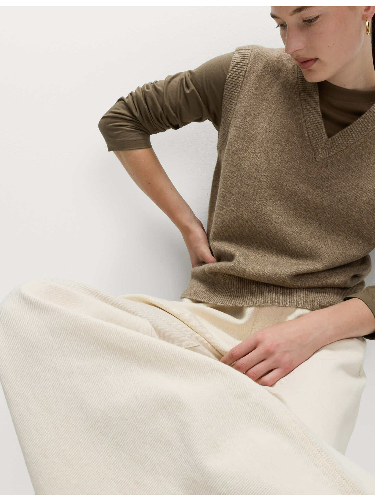 Pohodlný top s rozstrihnutým výstrihom a rozšírenými rukávmi Marks & Spencer smotanová