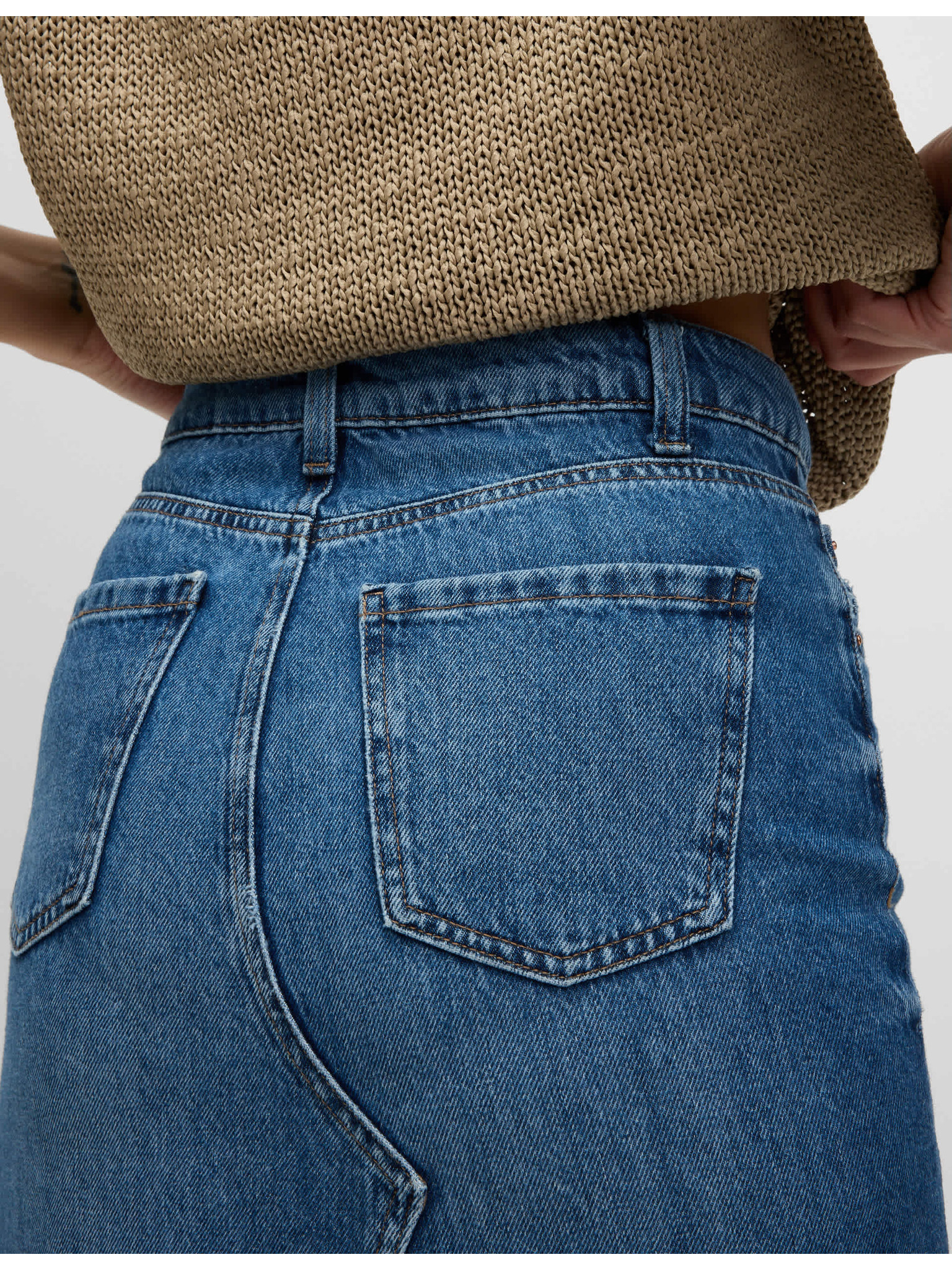 Džínsová puzdrová midi sukňa GAP