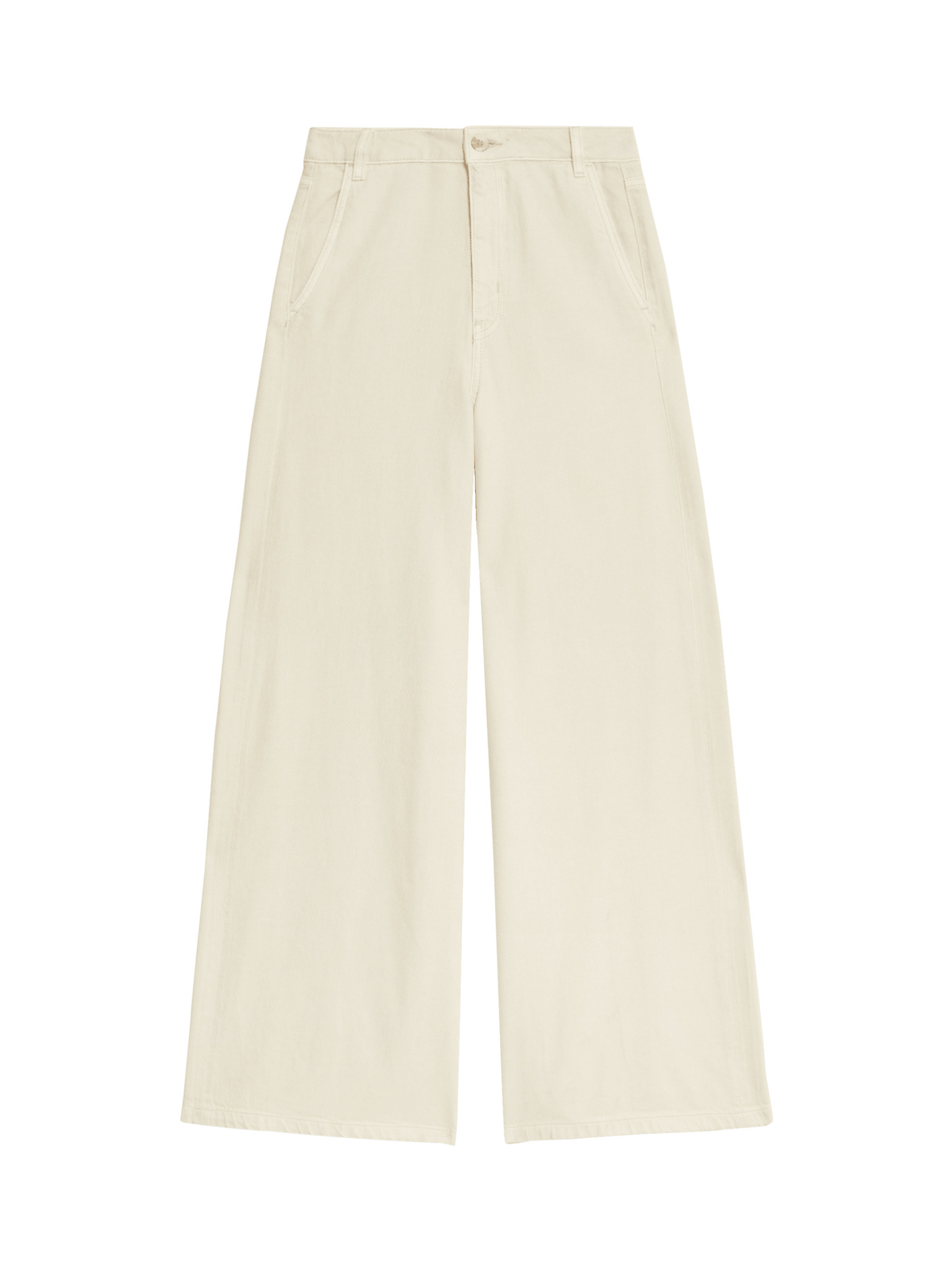 Žerzejové nohavice s prúžkom po stranách a širokými nohavicami Marks & Spencer smotanová
