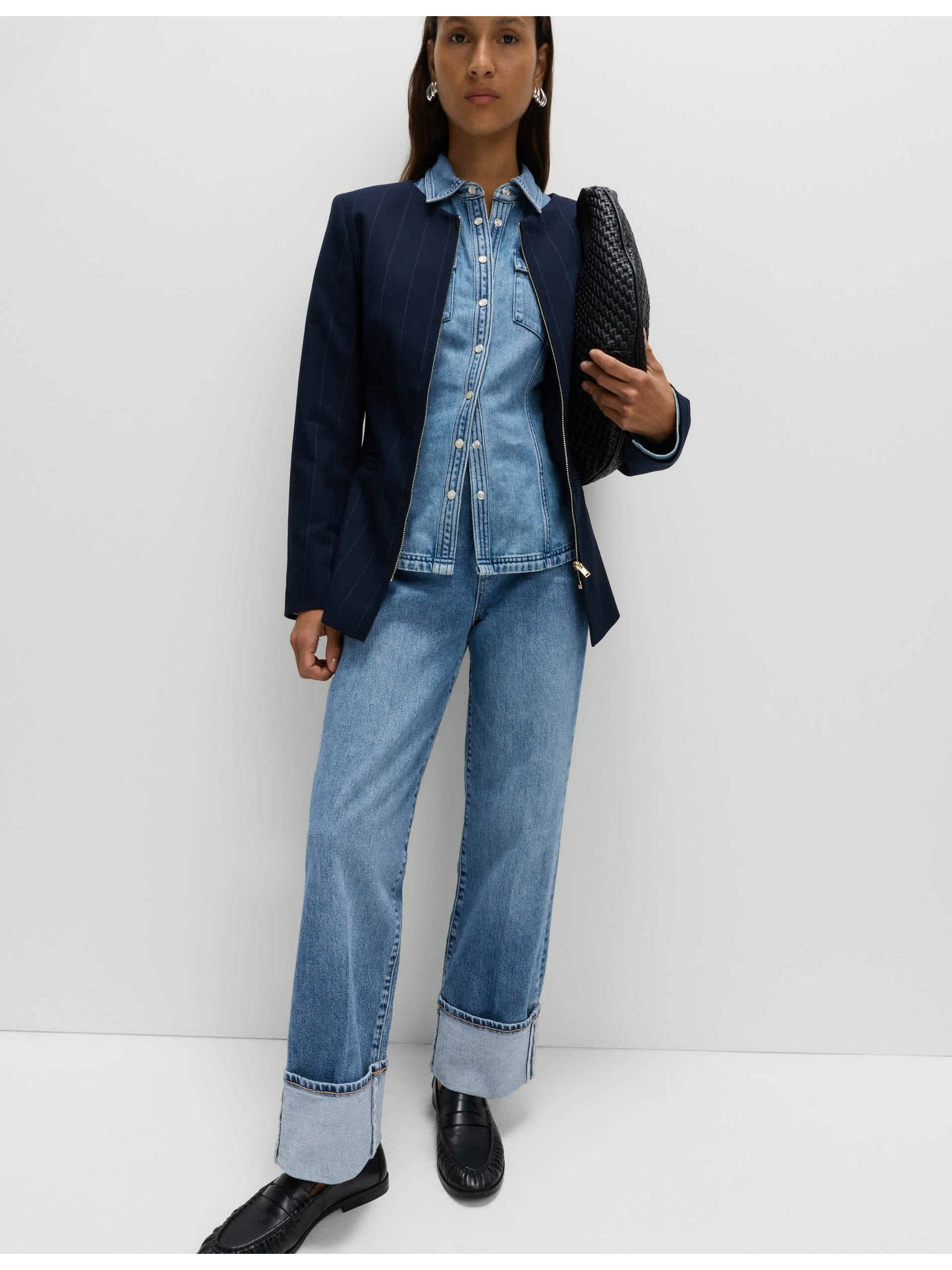 Džínsy s voľným strihom Marks & Spencer námorná modrá