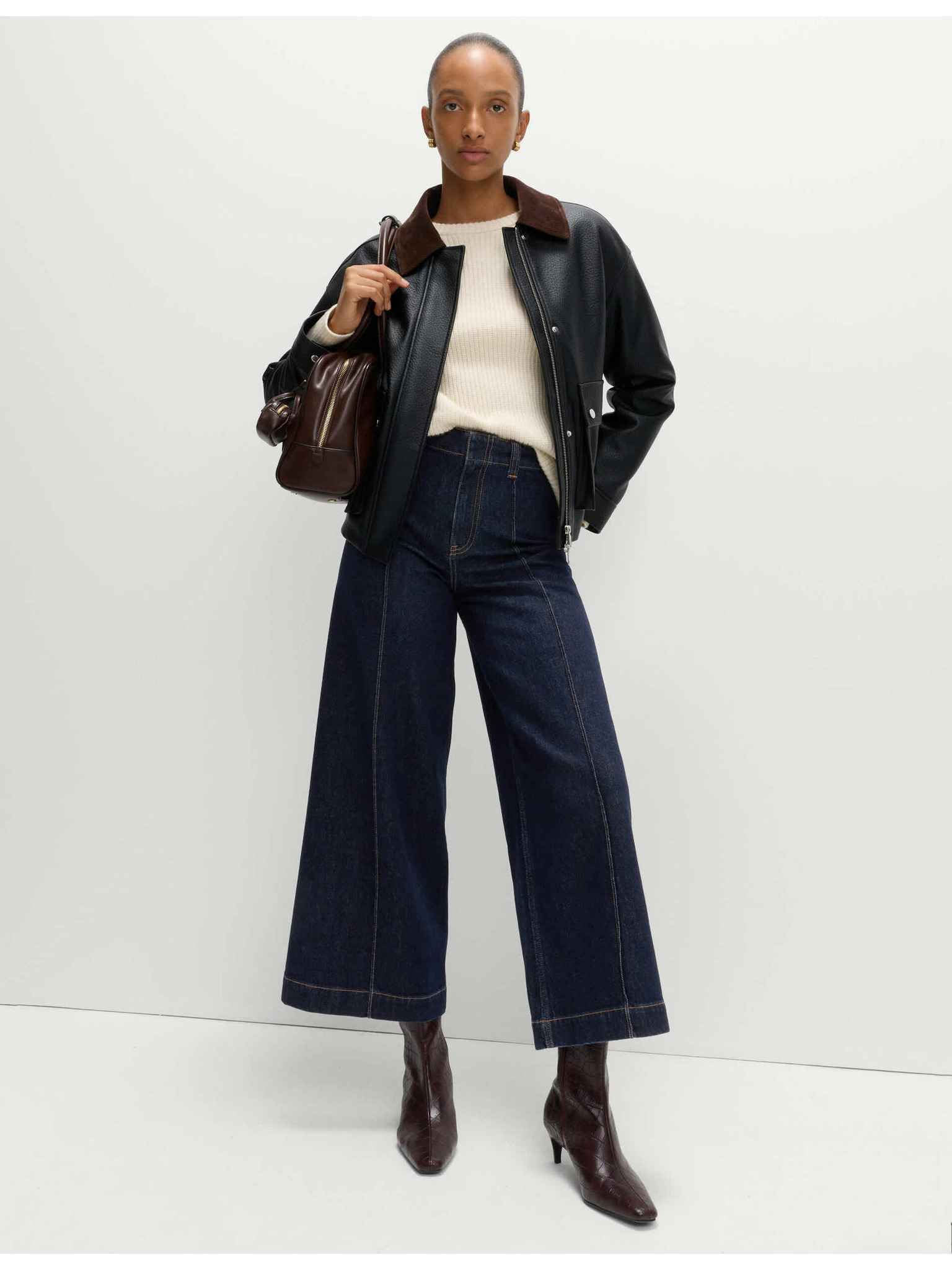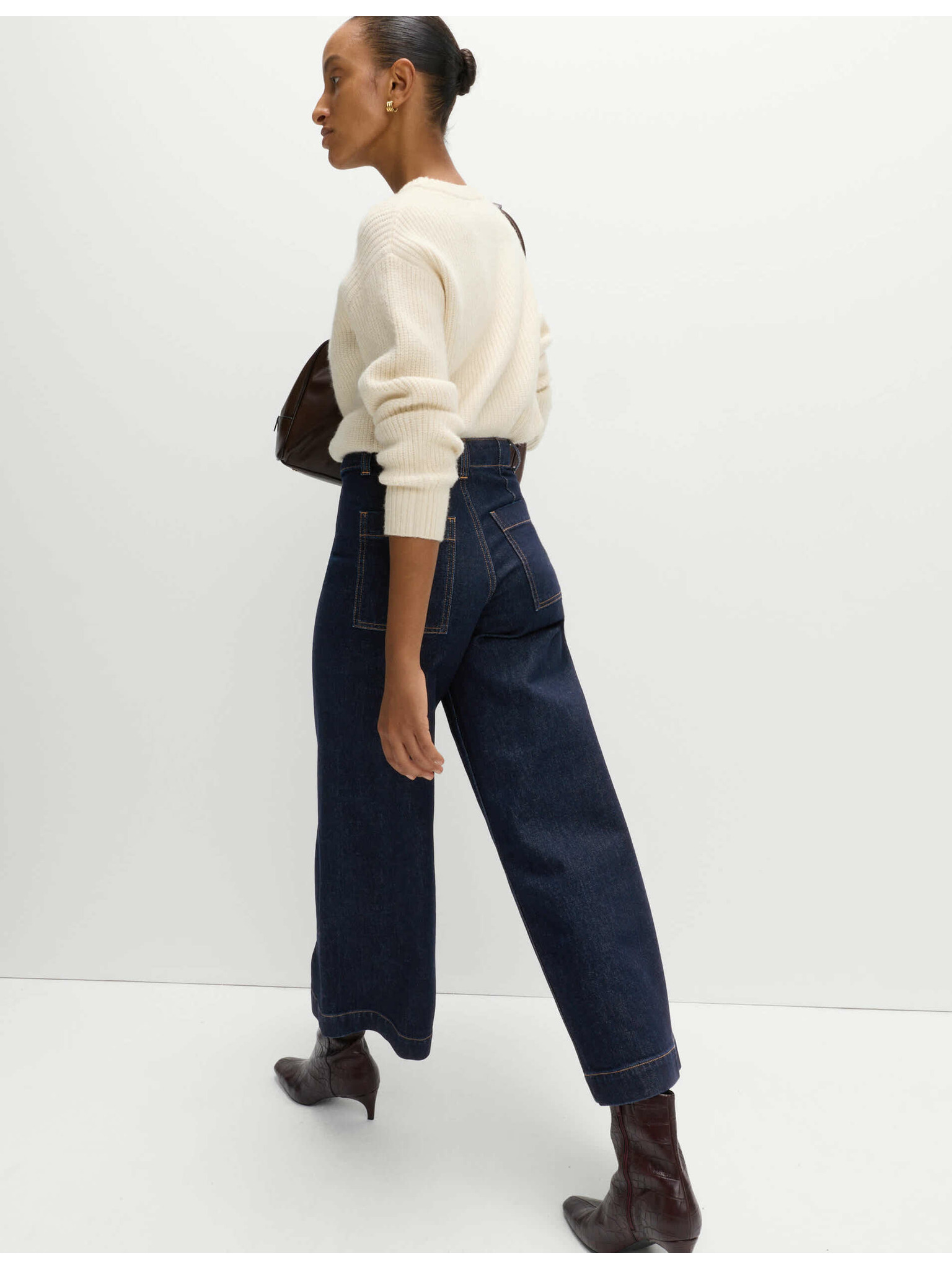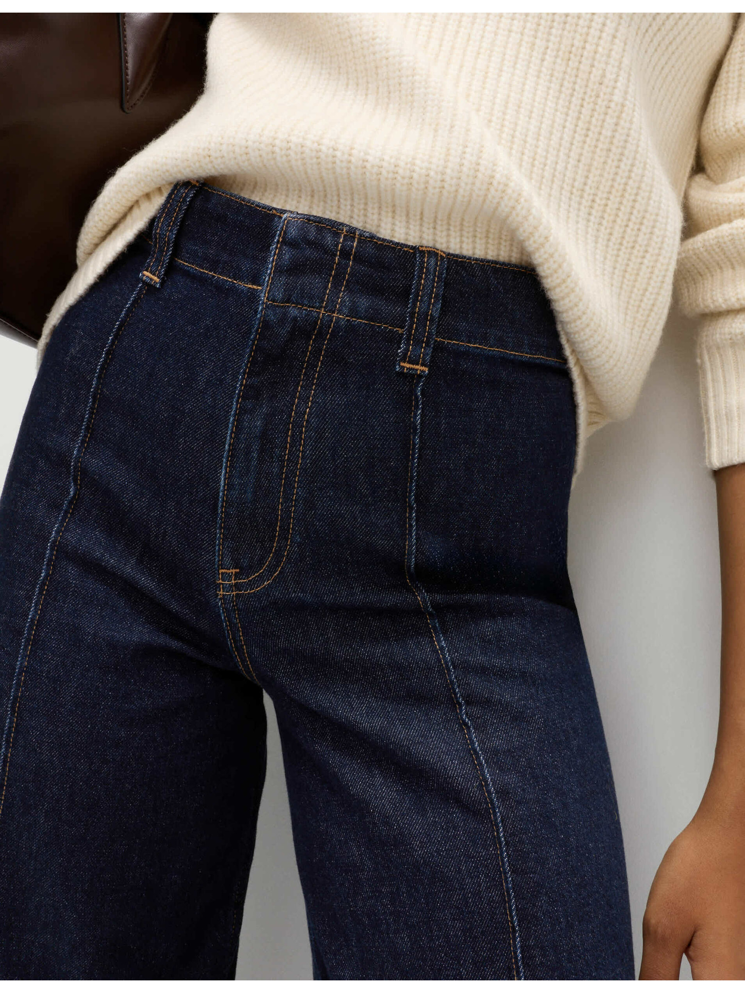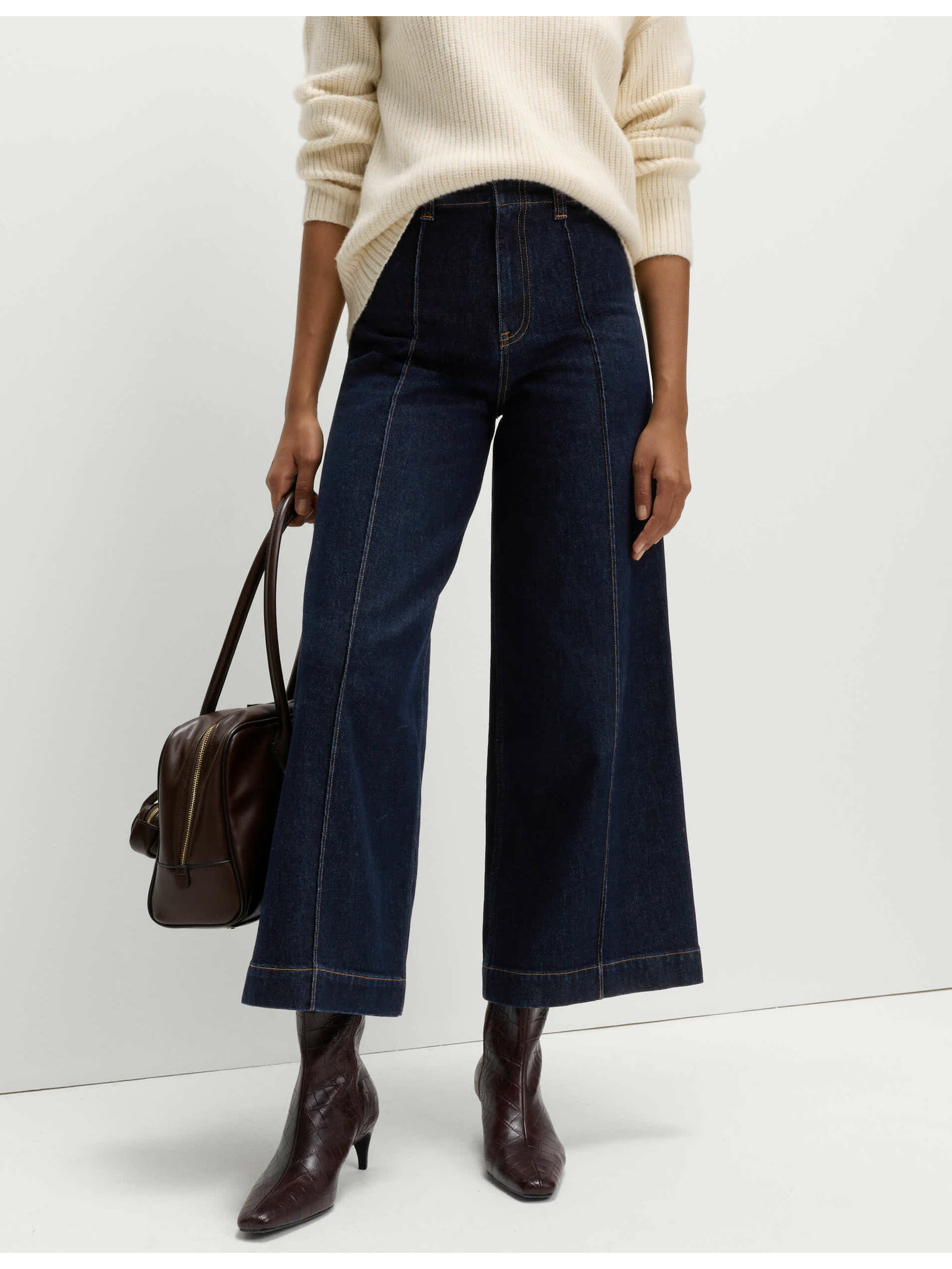 Džínsy so širokými vykasanými nohavicami a stredne vysokým pásom Marks & Spencer námorná modrá