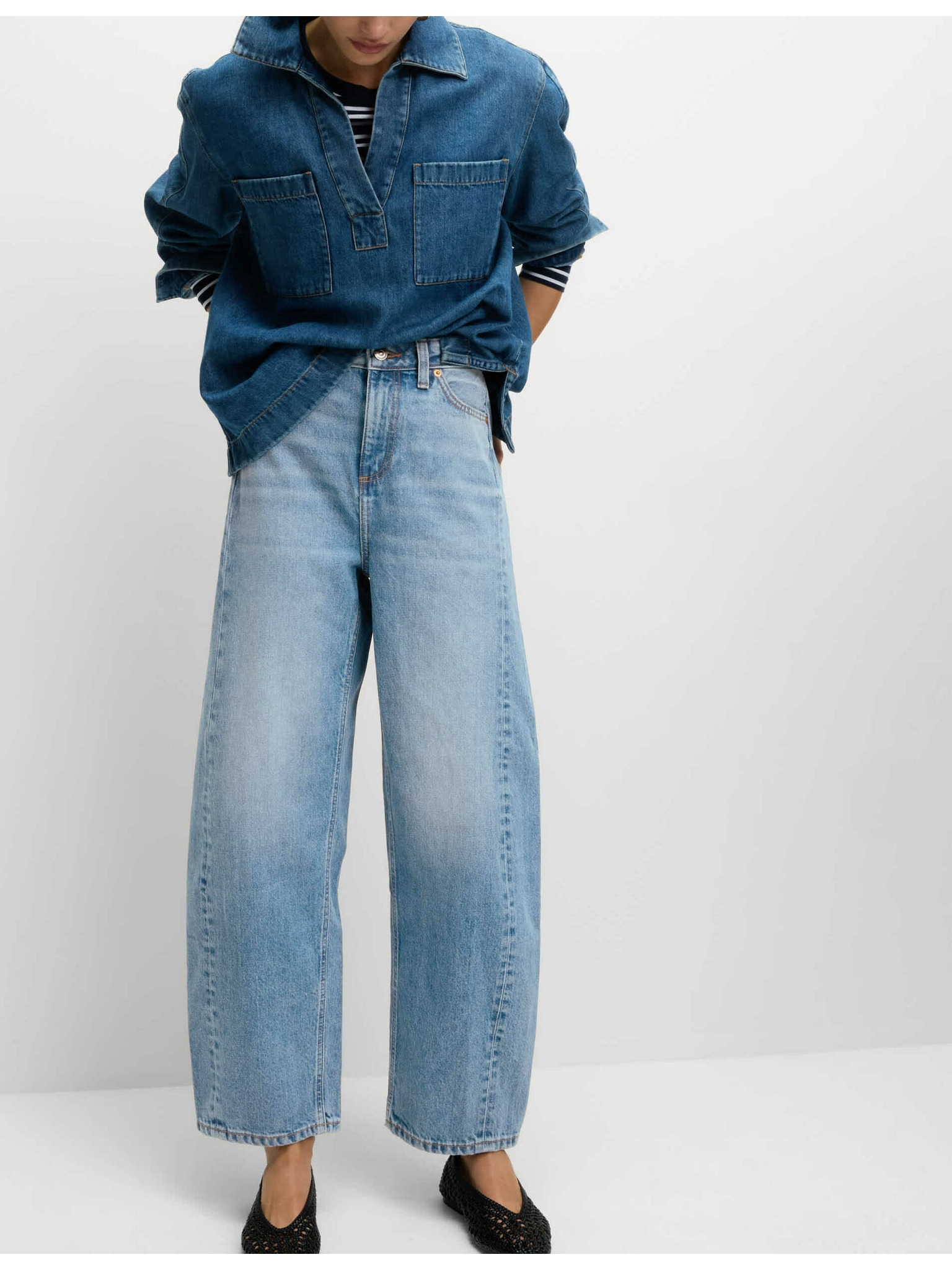 Džínsy s nohavicami mrkvového strihu ku člnkom a vysokým pásom Marks & Spencer smotanová