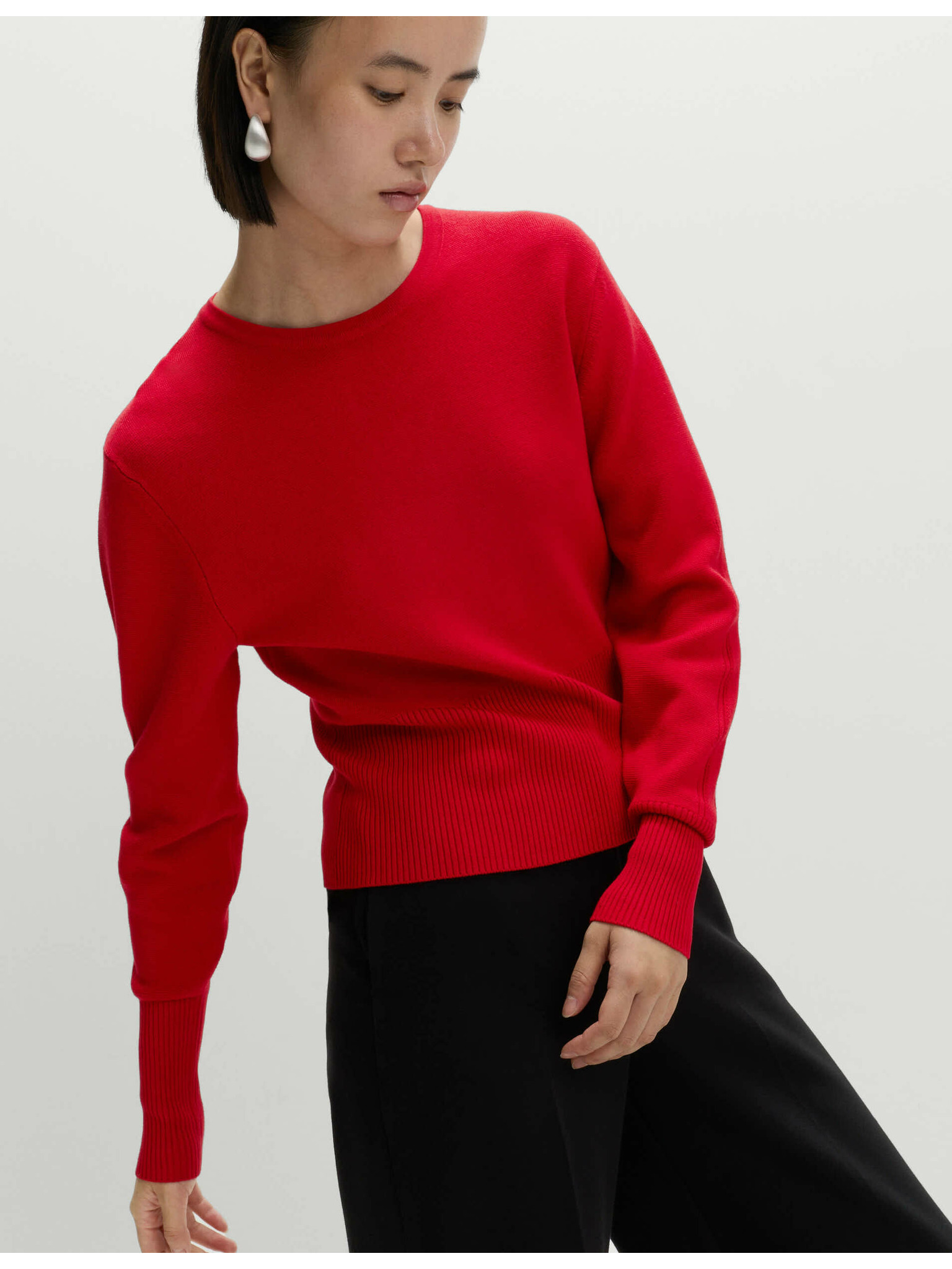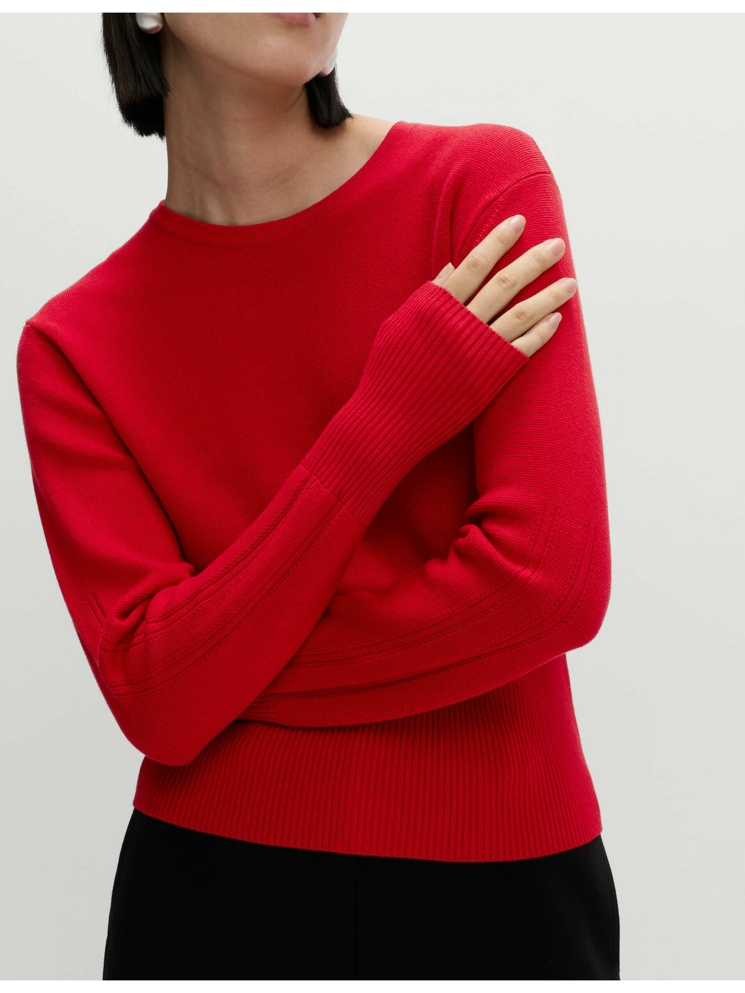 Sveter z čistého kašmíru, s textúrou a okrúhlym výstrihom Marks & Spencer červená