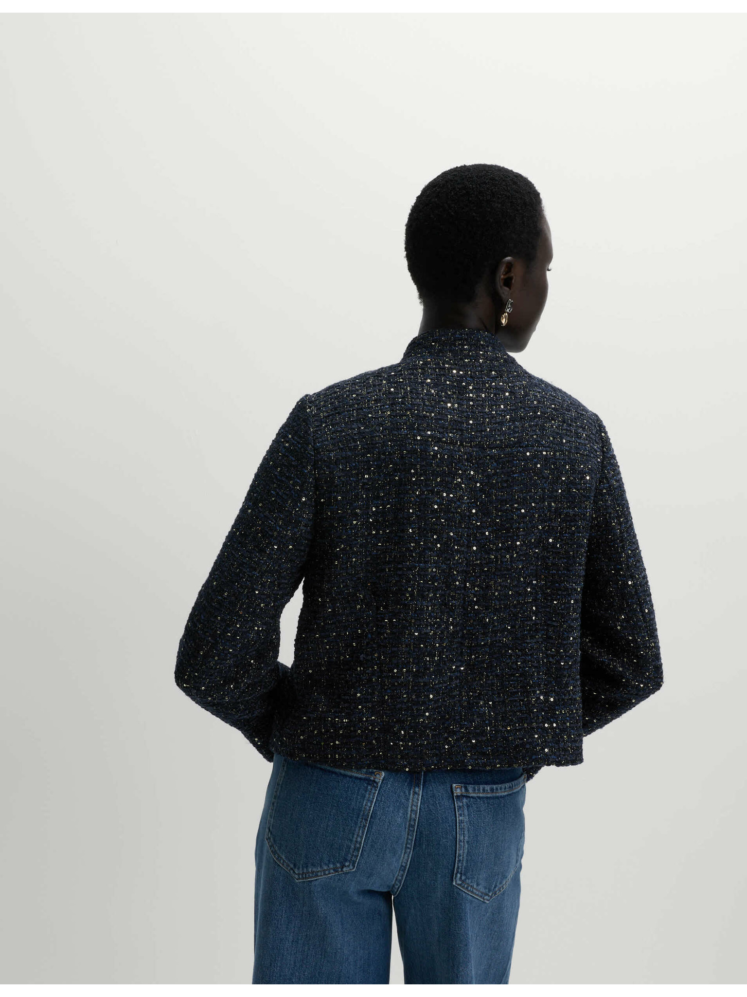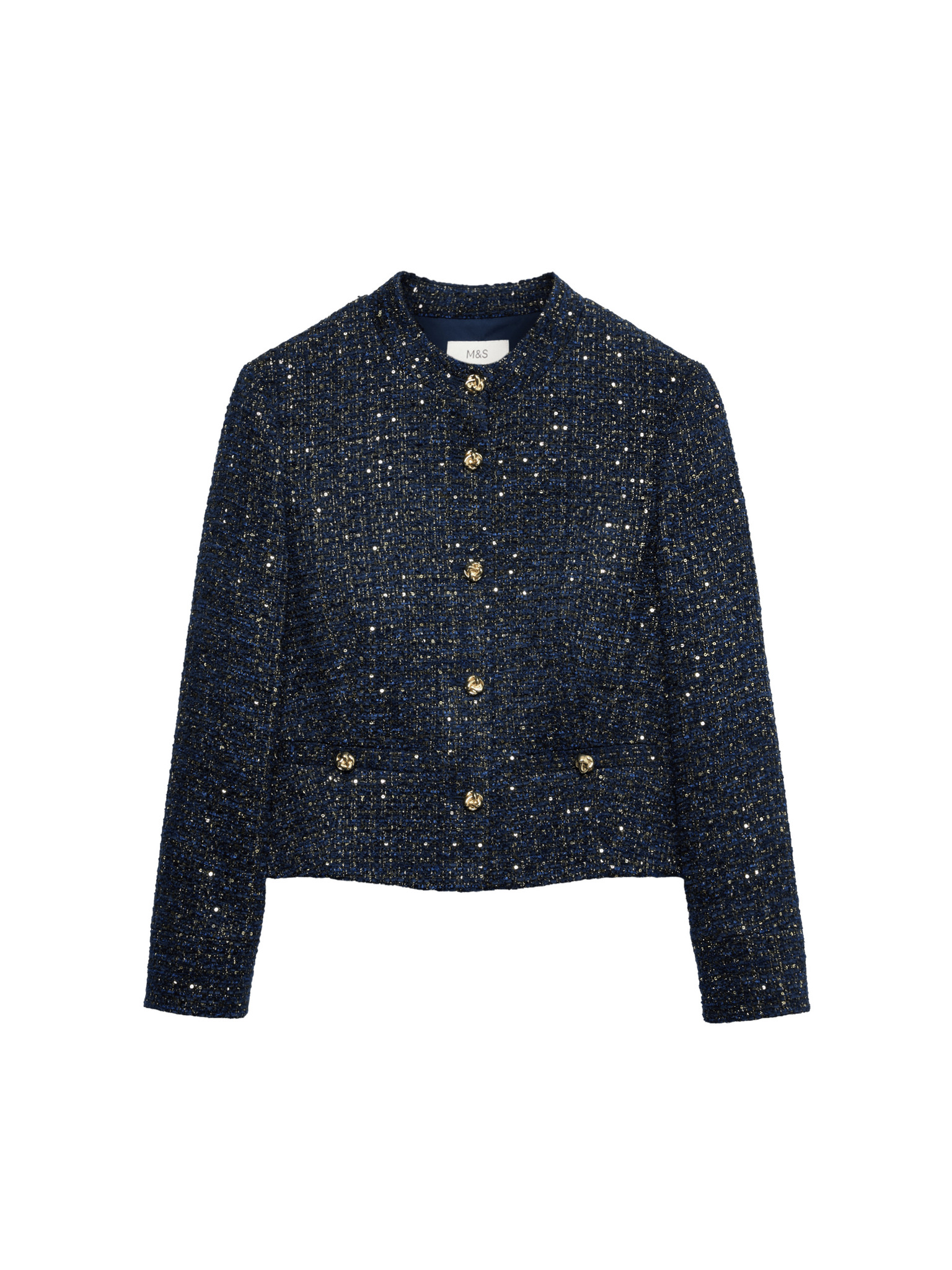 Tvídová bunda bez goliera s vysokým podielom bavlny Marks & Spencer čierna