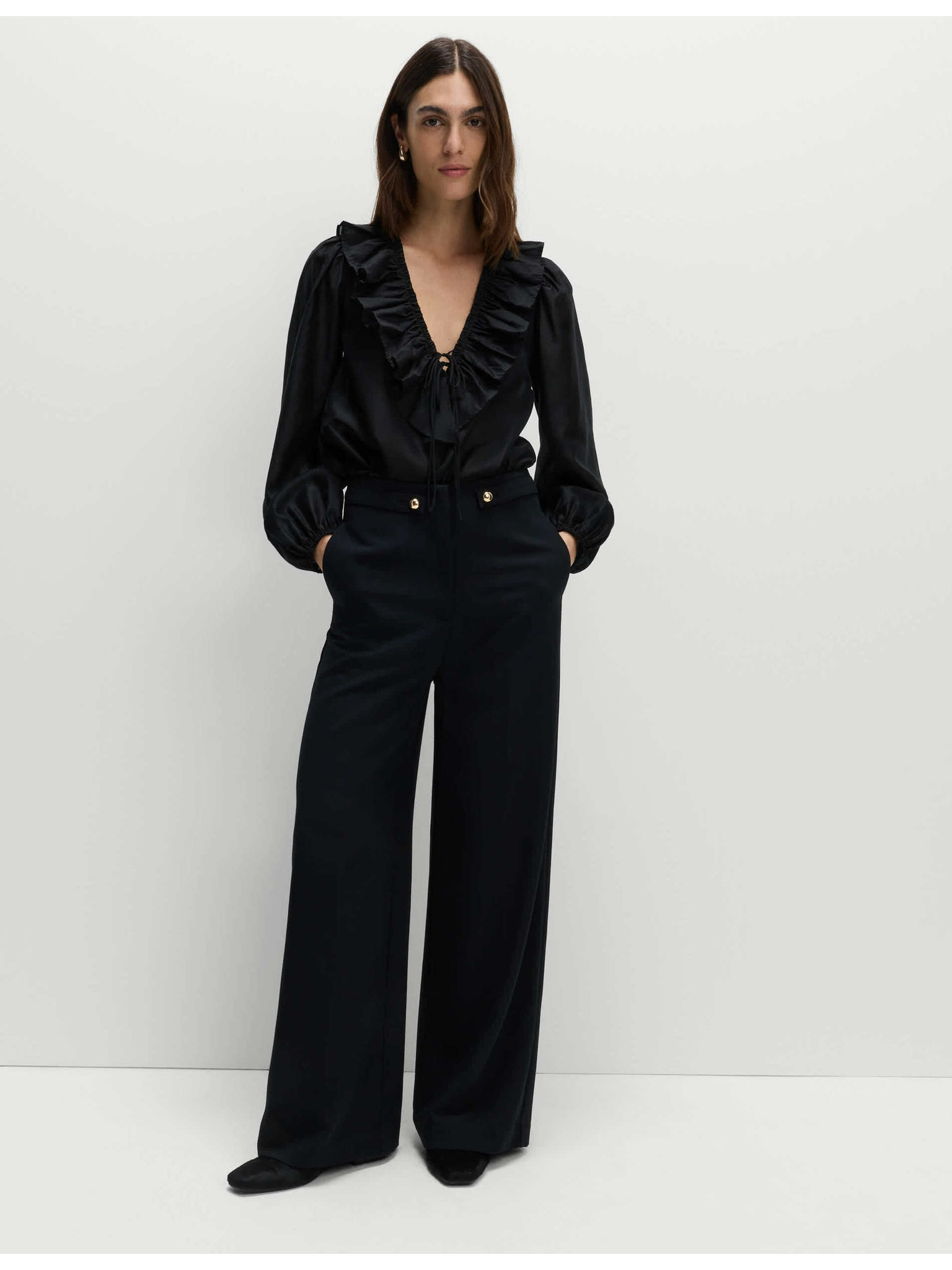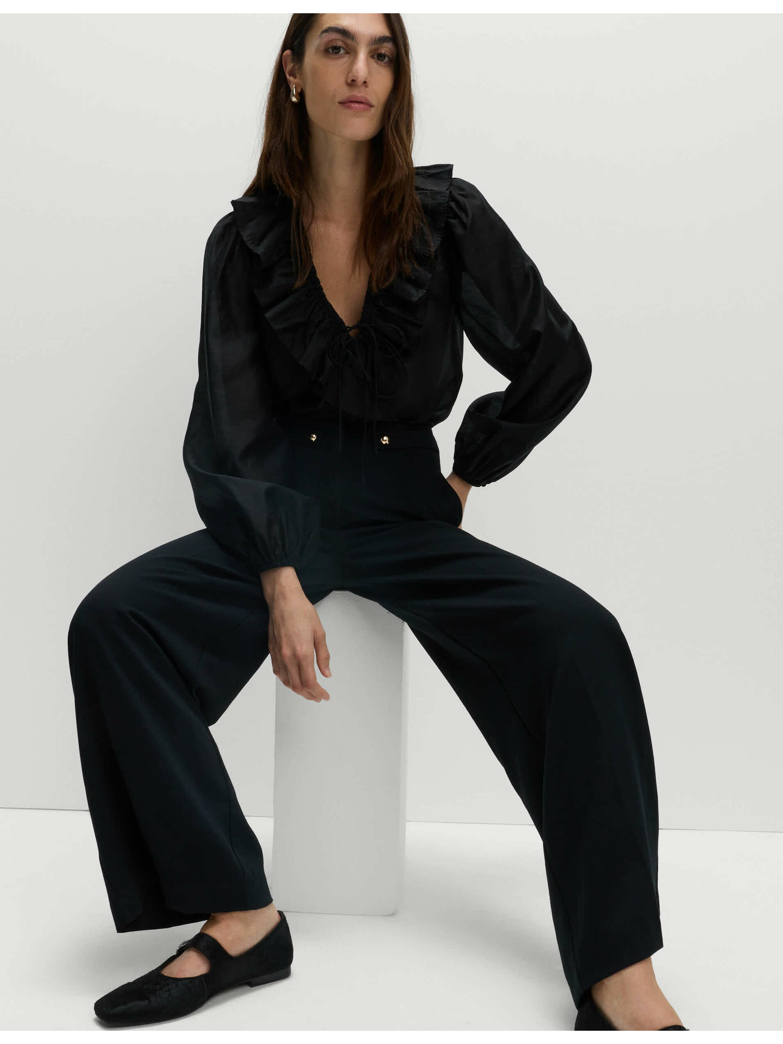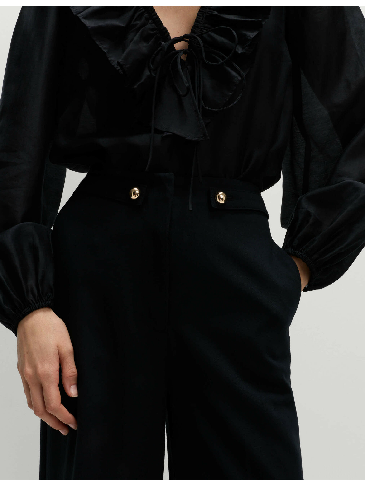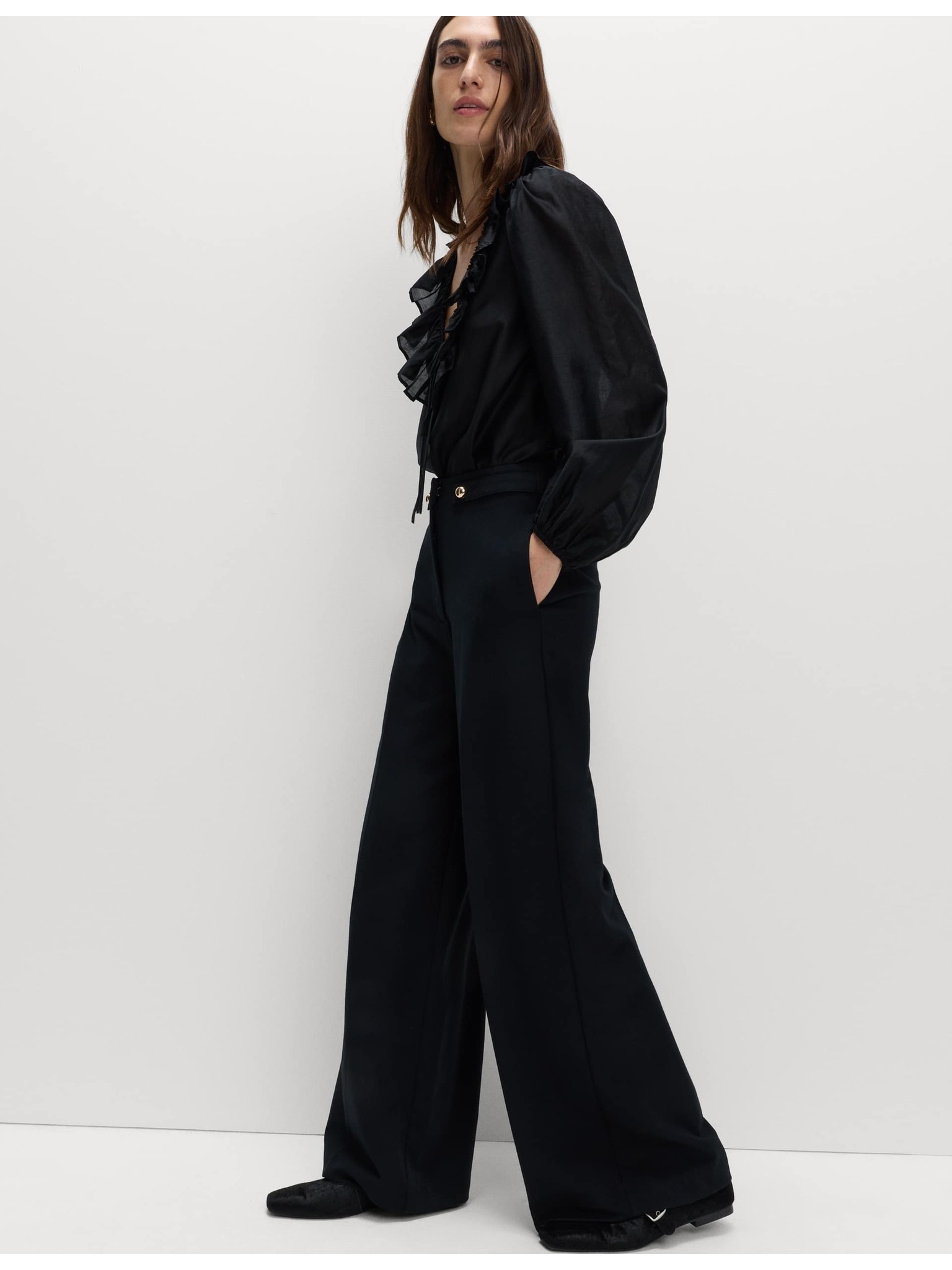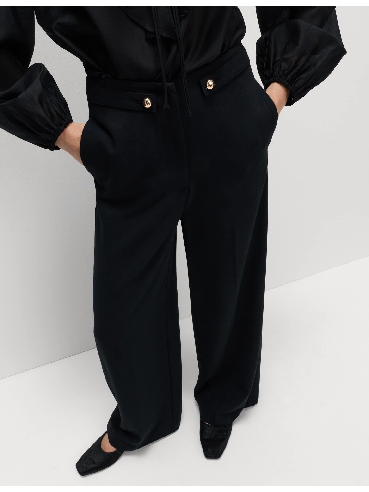 Nohavice so stiahnutím v páse a širokými nohavicami Marks & Spencer čierna