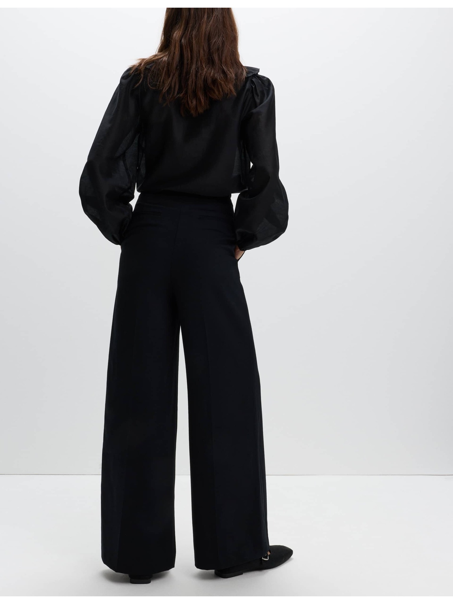 Nohavice so sklady a širokými nohavicami Marks & Spencer čierna