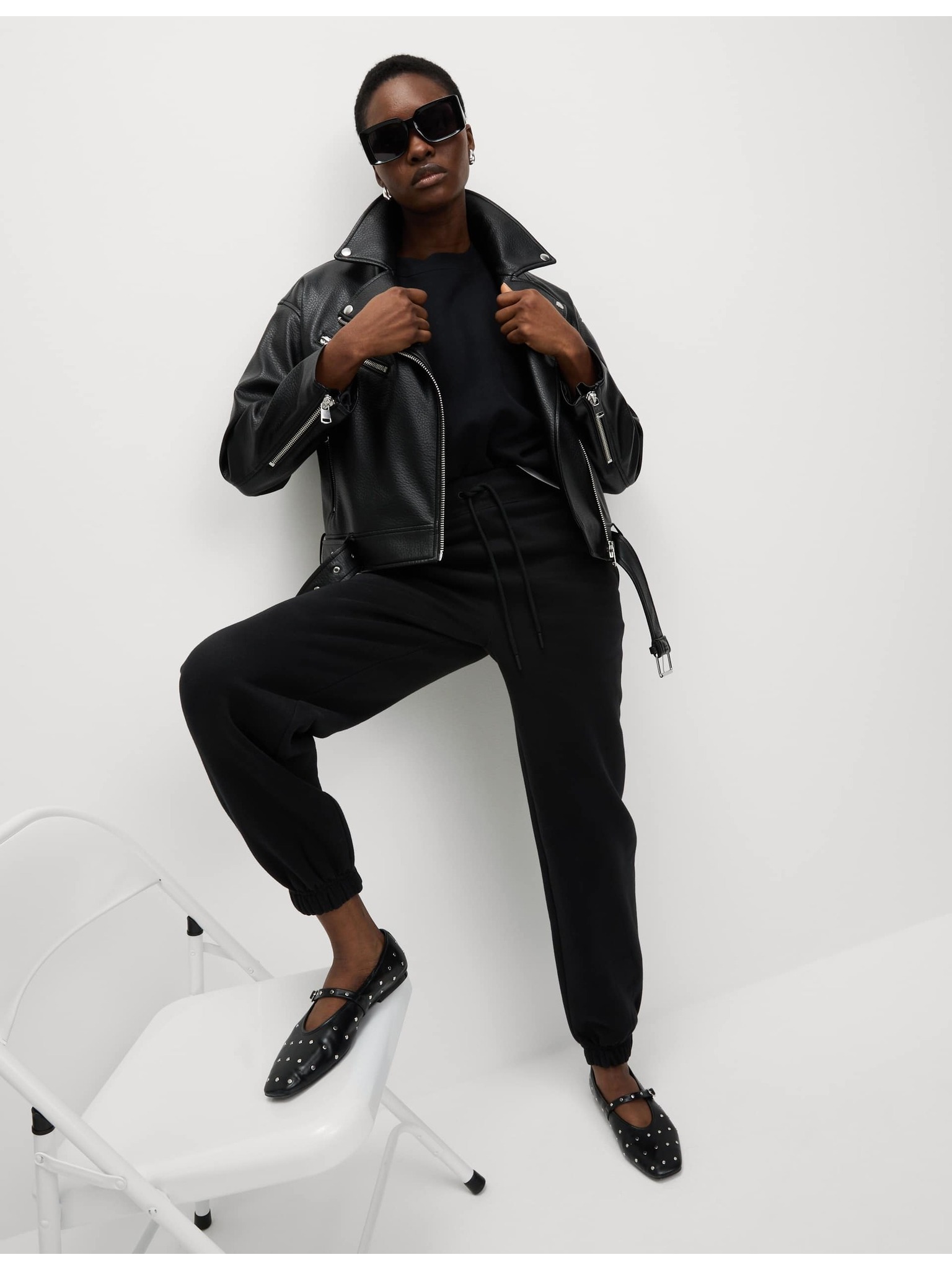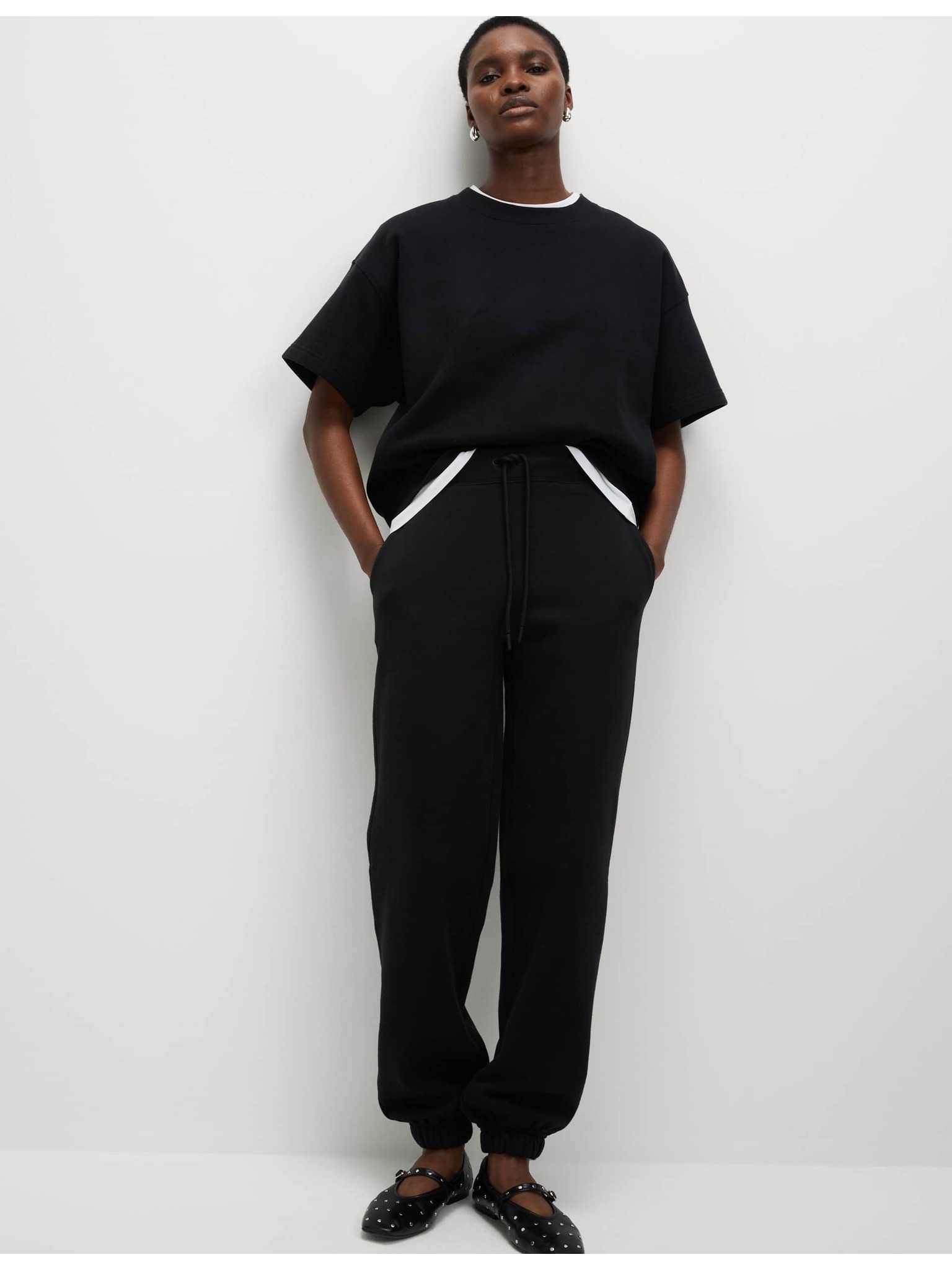 Mierne zúžené členkové nohavice so šnúrkami na stiahnutie Marks & Spencer čierne