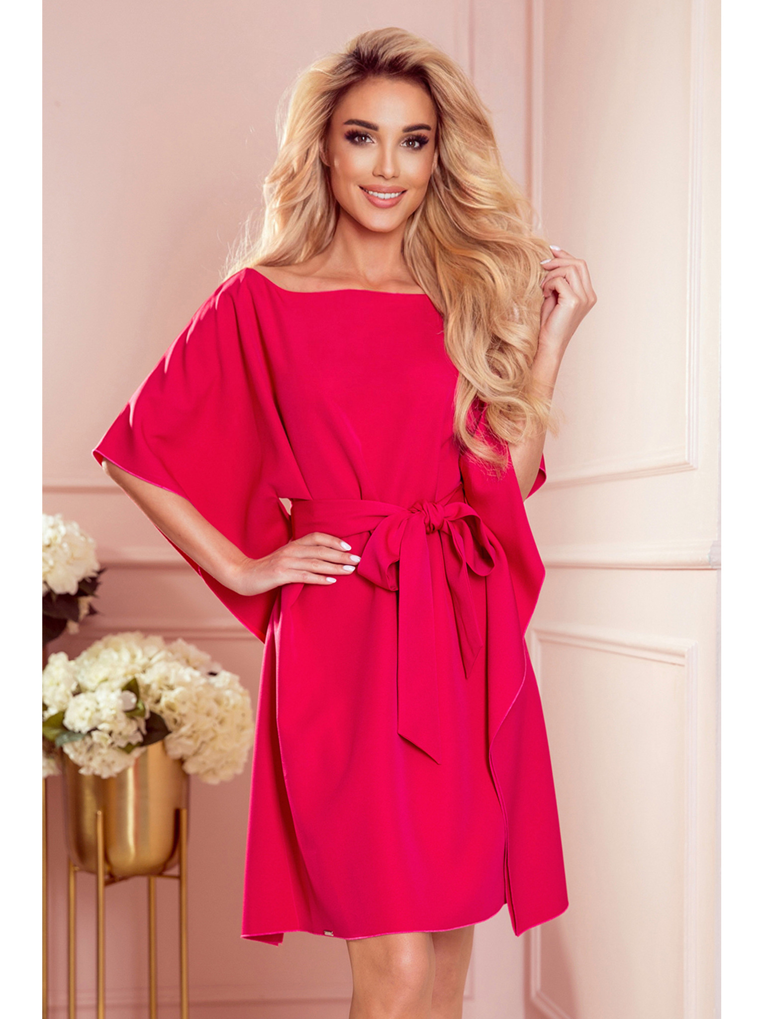 Šaty s rozšíreným výstrihom - púdrovo ružové Numoco SCARLETT