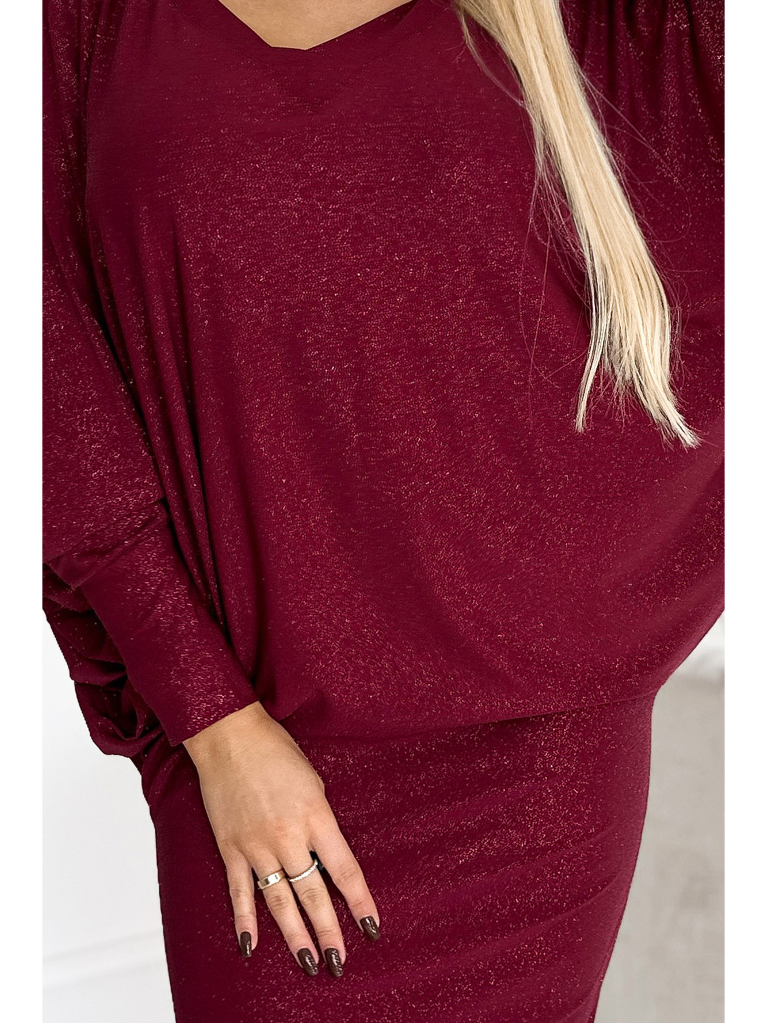 Trblietavé dlhé šaty s výstrihom - bordové Numoco CRYSTAL