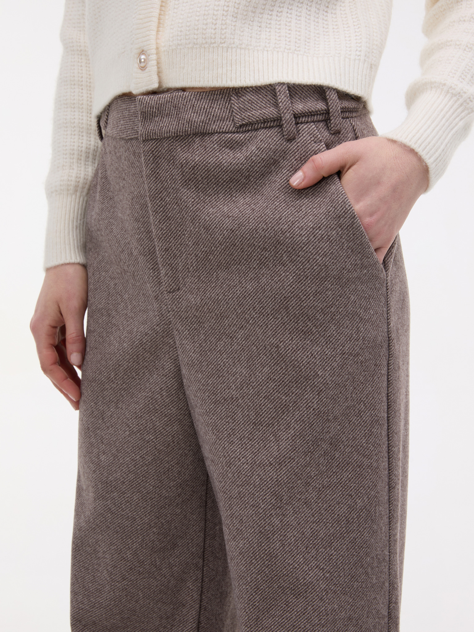 Tmavo béžové nohavice so štruktúrou a rovnými nohavicami Moodo