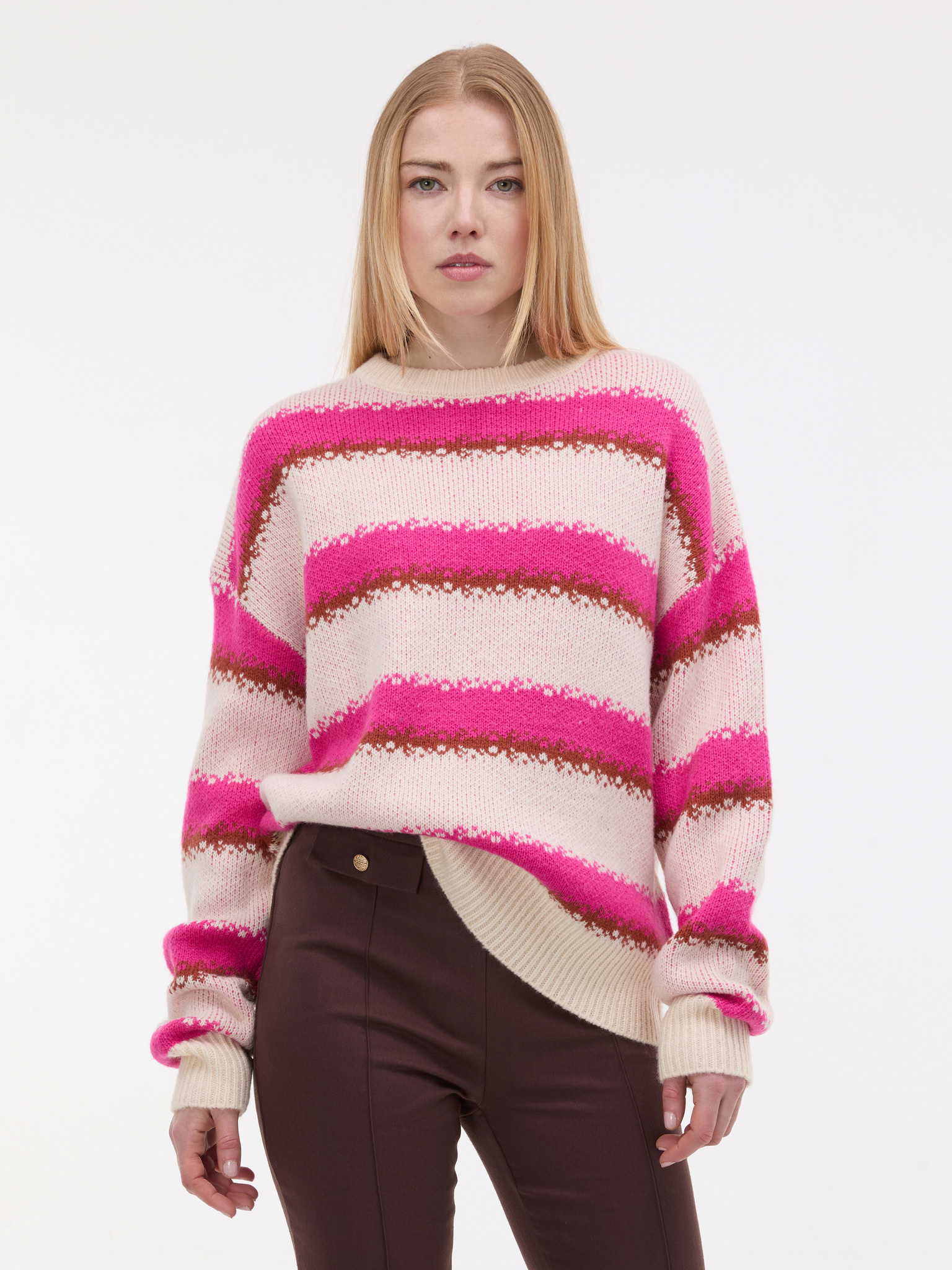 Ružový sveter s pruhmi Moodo