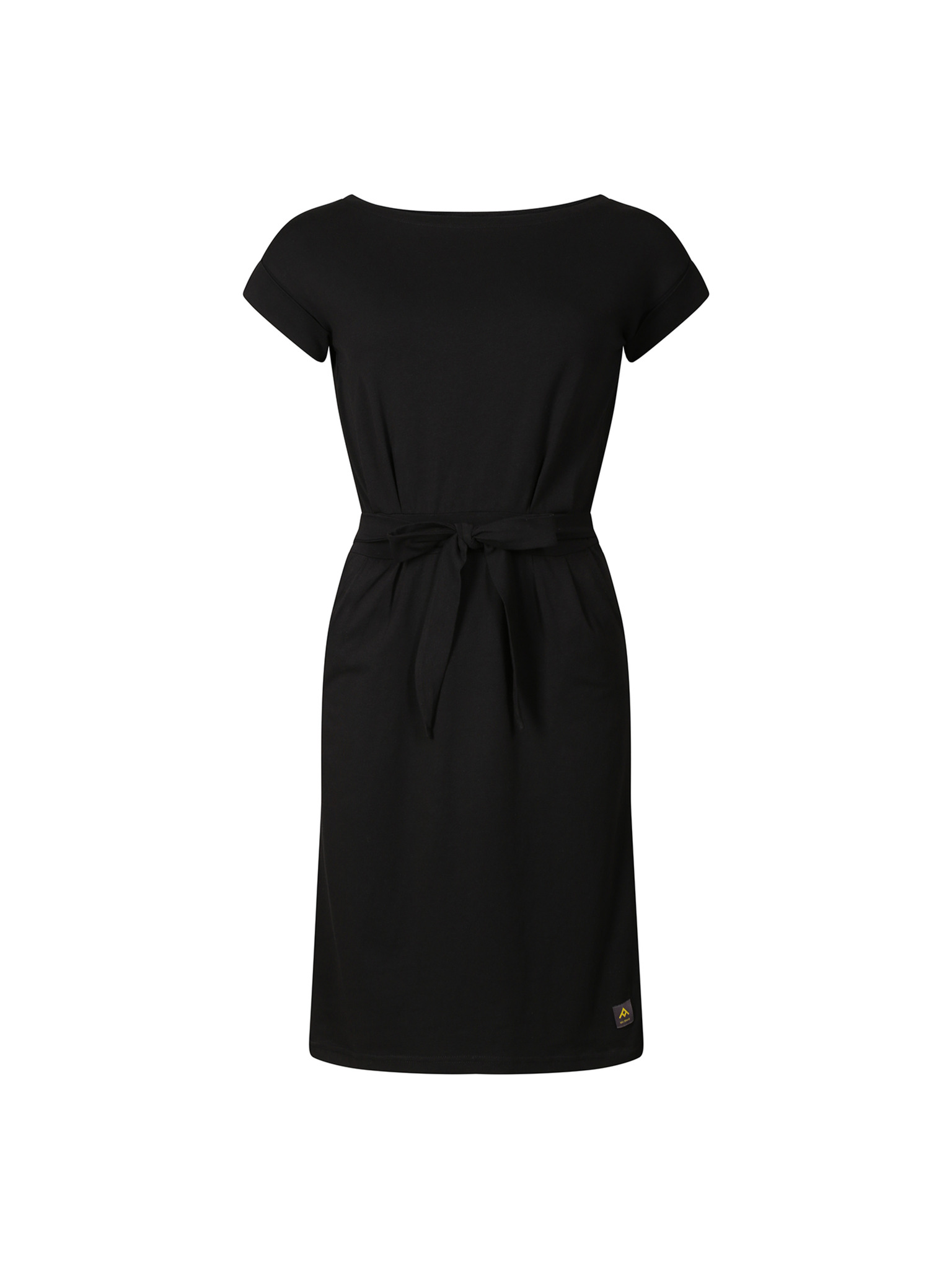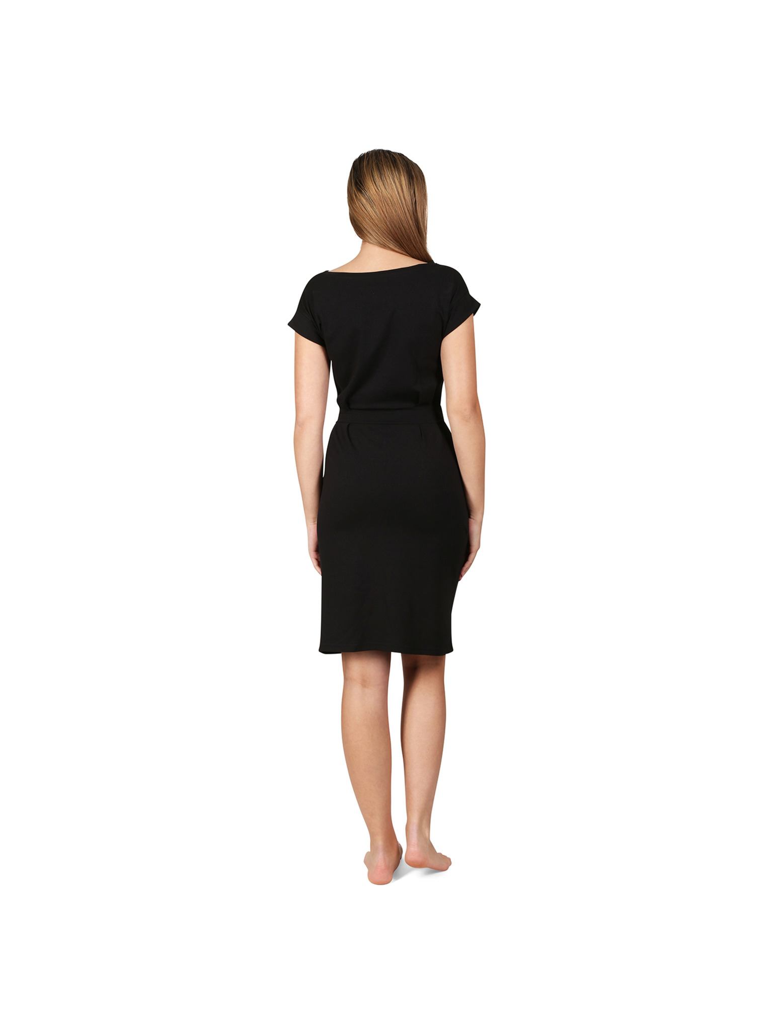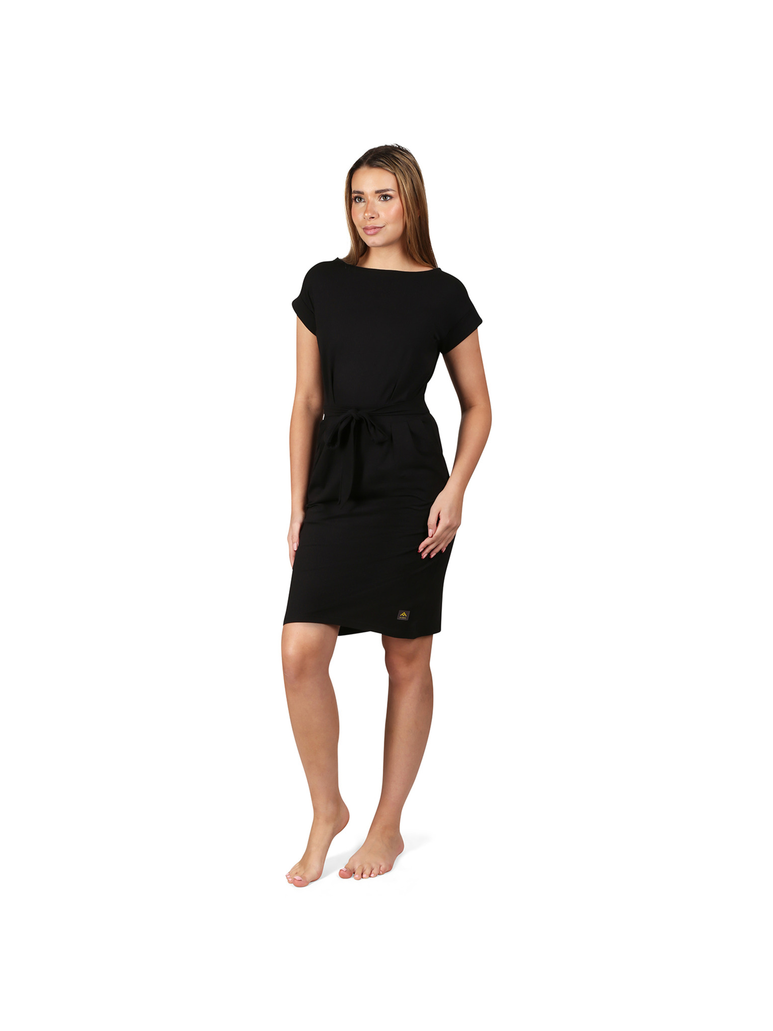 Čierne šaty s asymetrickou sukňou a páskom