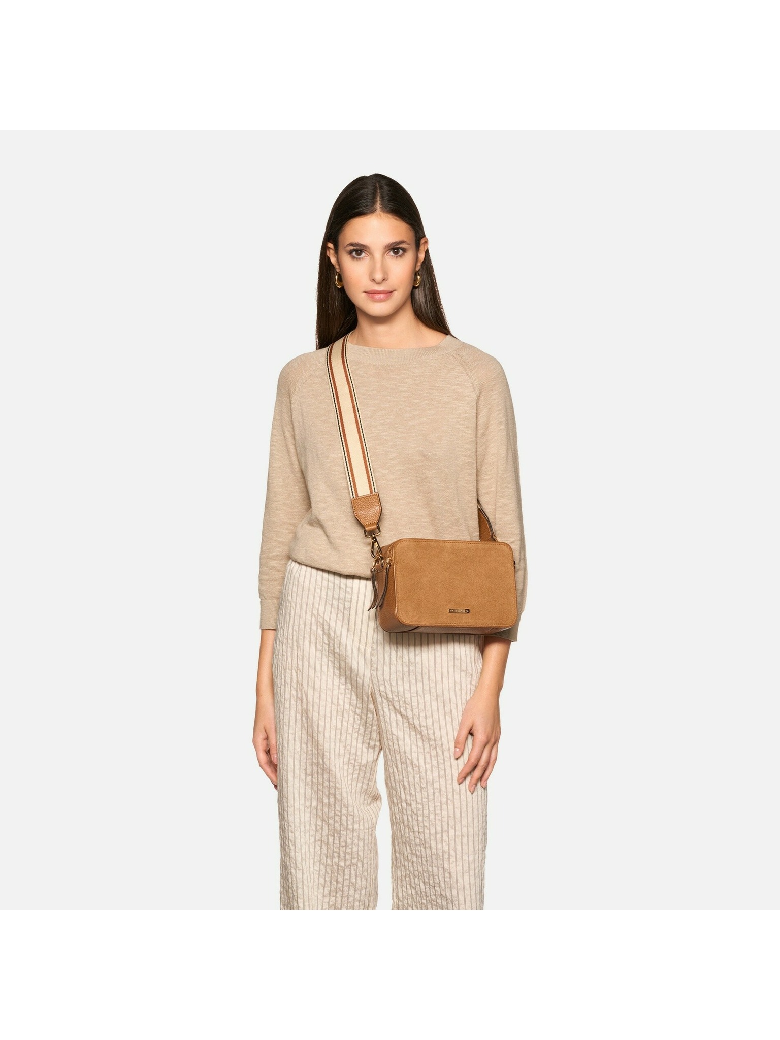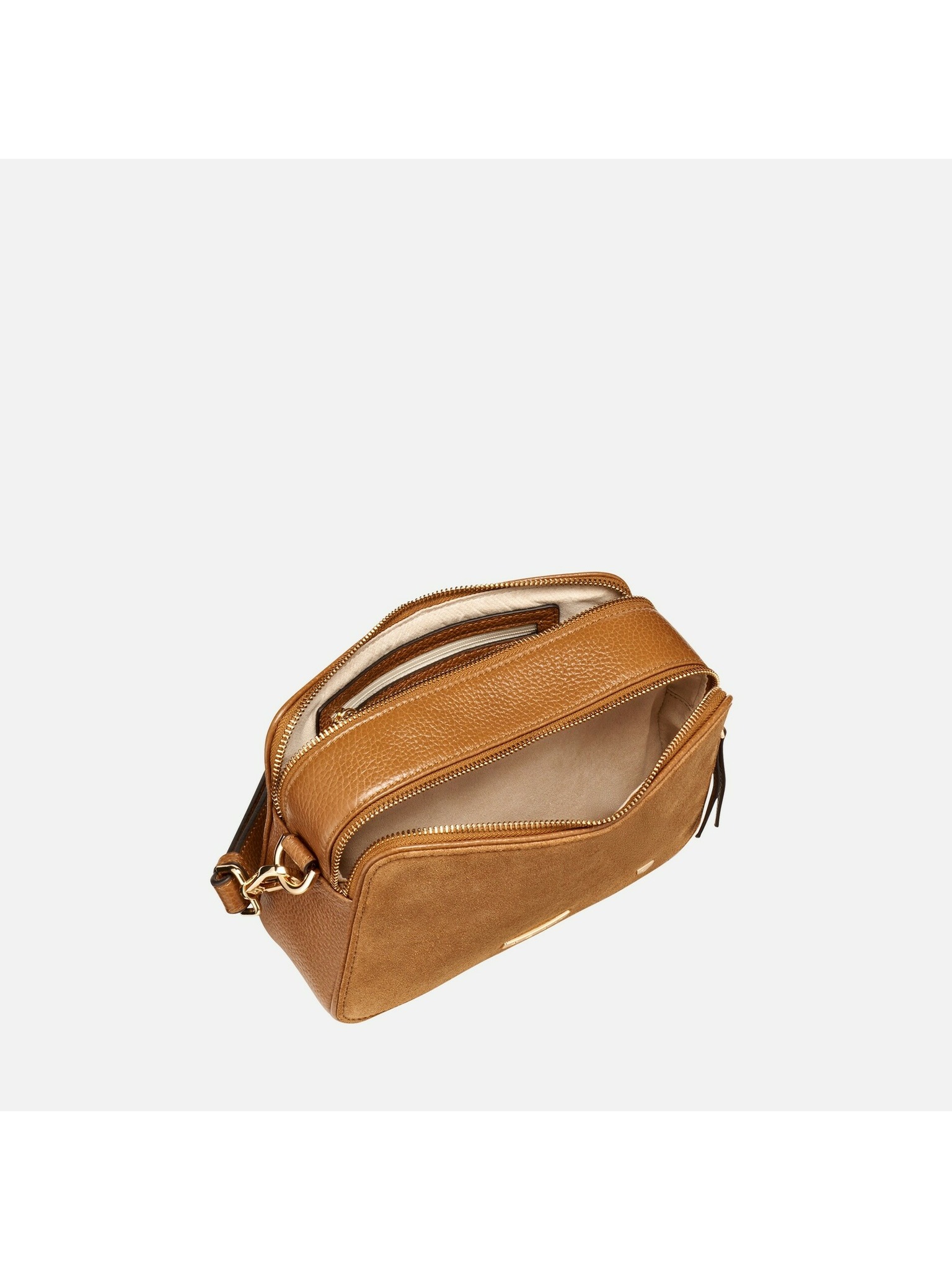 Model Norize v koňakovom odtieni spája semiš a jemne zrnitú kožu a ponúka kompaktné rozmery ideálne na každodenný pohyb po meste. Čistý dizajn dopĺňa praktické riešenie s dvojitým zipsom a variabilným nosením.