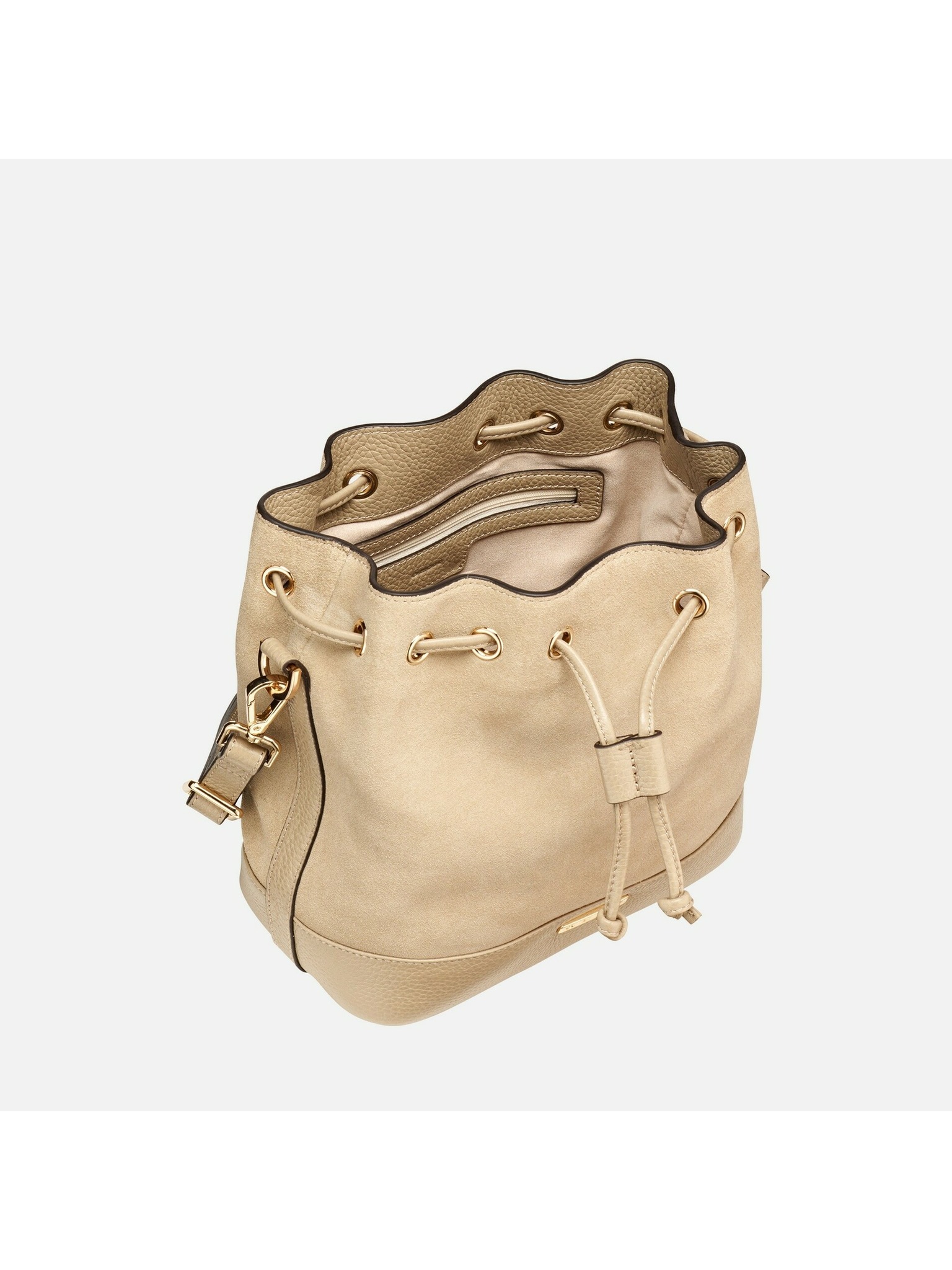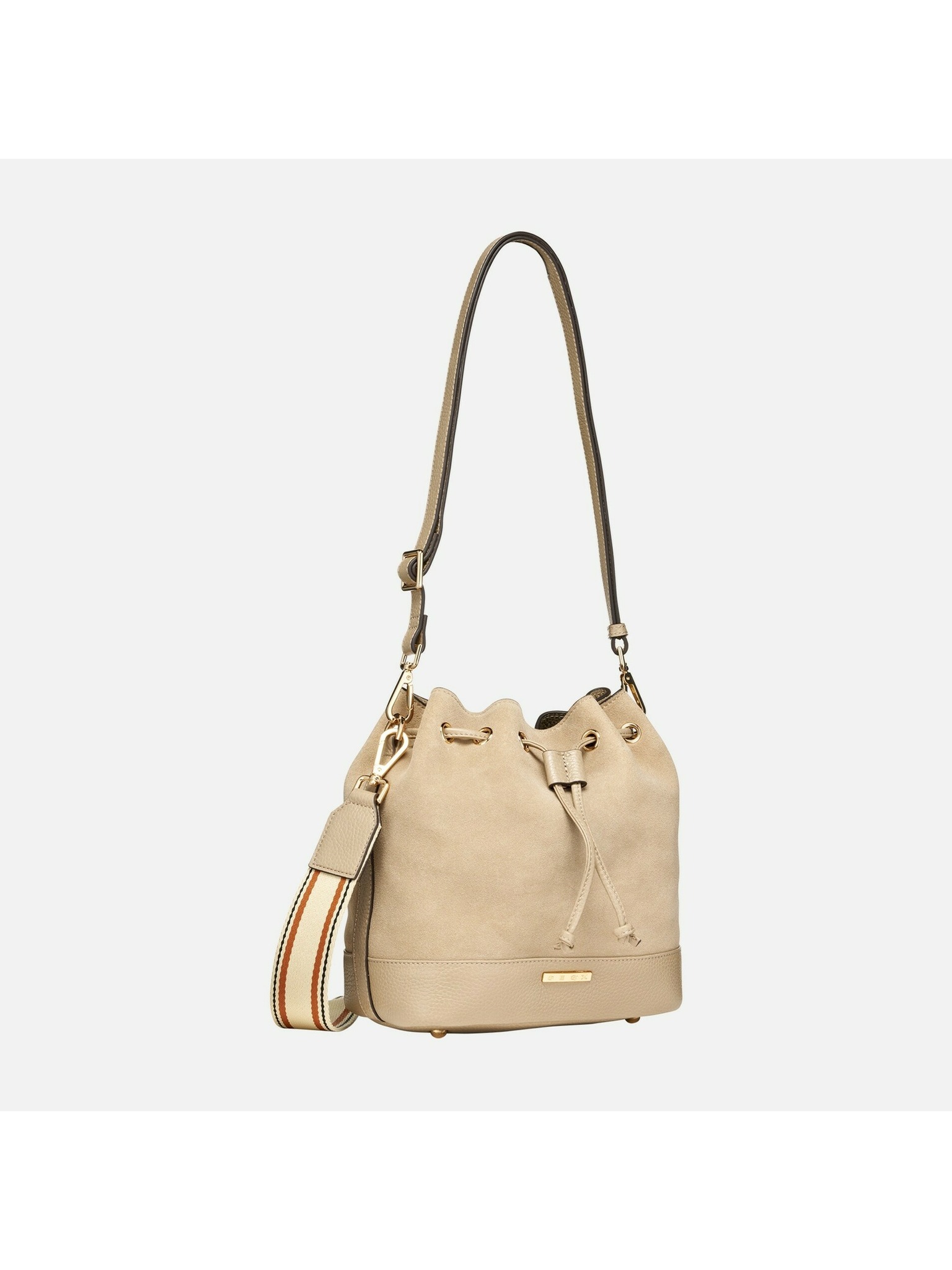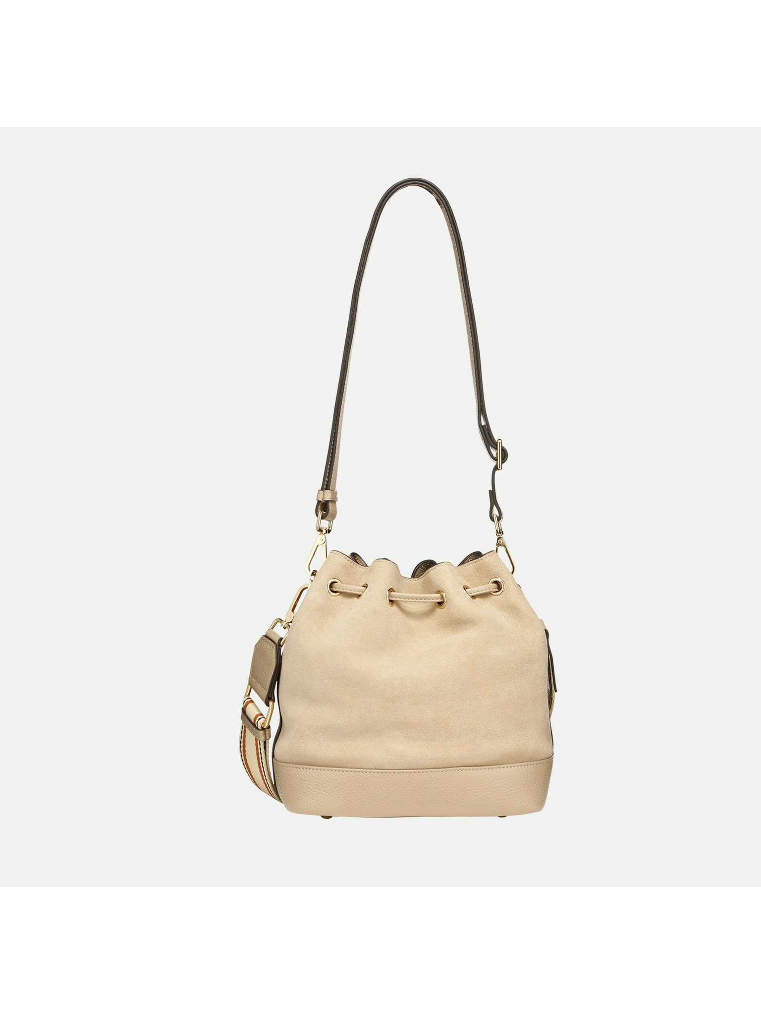 Tento model v jemnom svetlo taupe odtieni kombinuje mäkkú zrnistú kožu so semišom a ponúka funkčné riešenie pre mestské dni. Kompaktný, no priestranný bucket tvar zabezpečuje komfort aj štýl pri každodennom nosení.