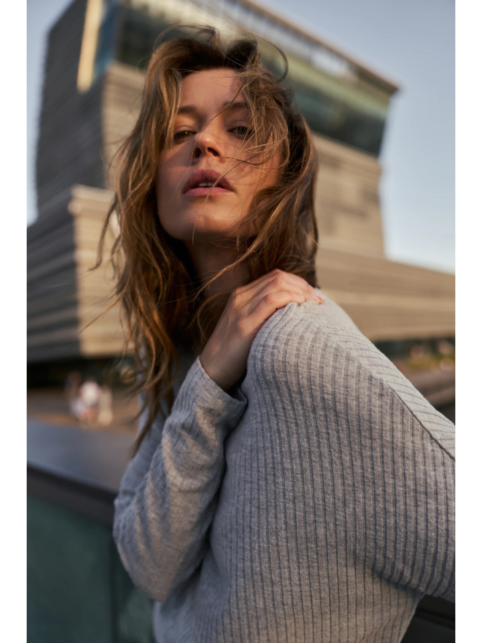 Šedý sveter s rolákom a pruhmi Moodo