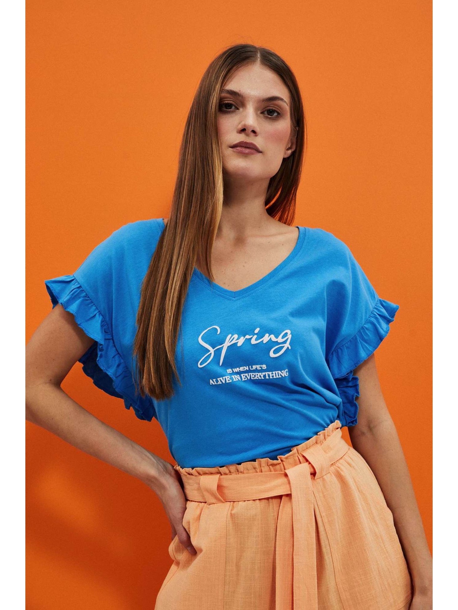 Blúzka s nápisom a volánikom na rukáve Moodo