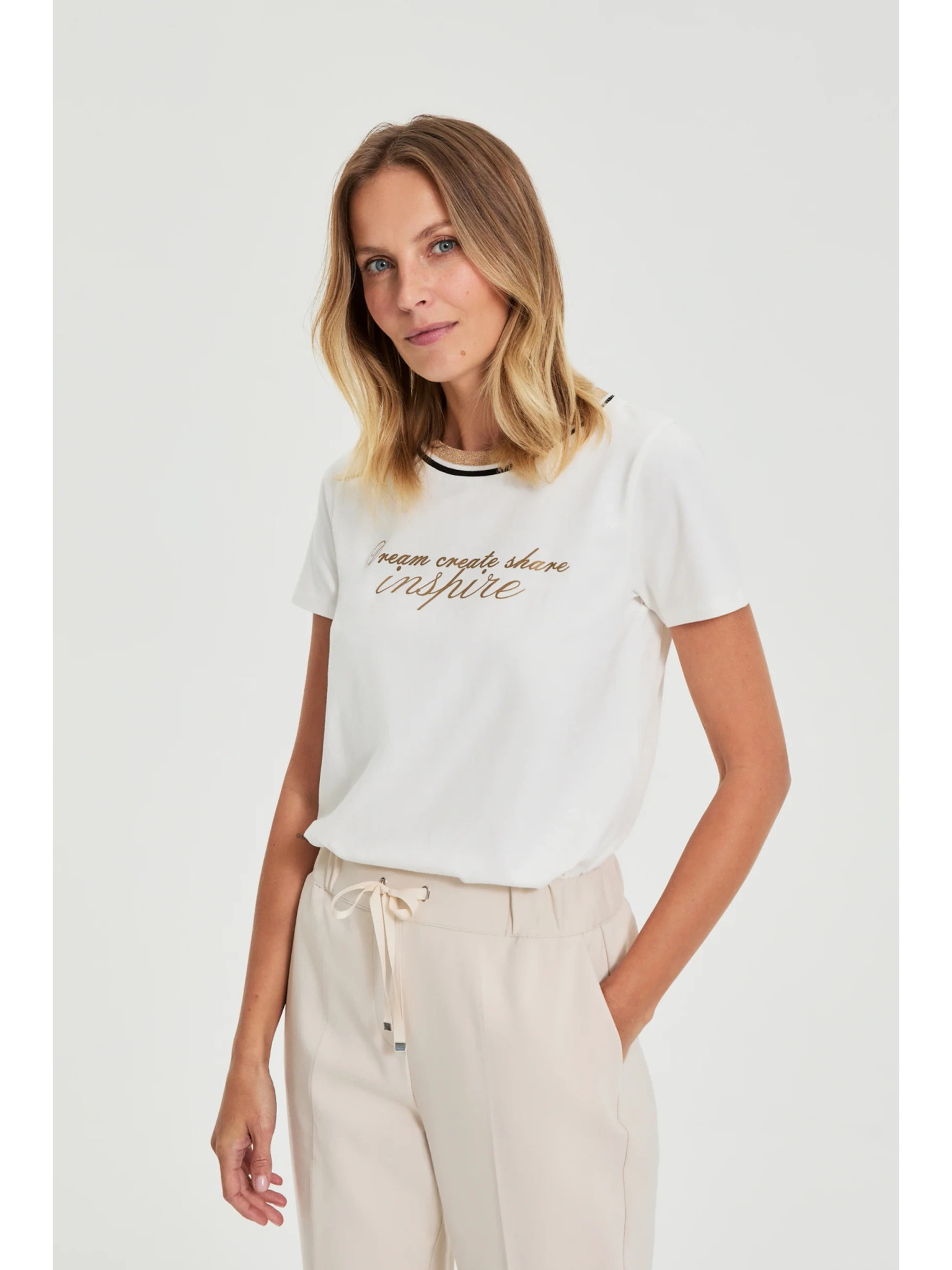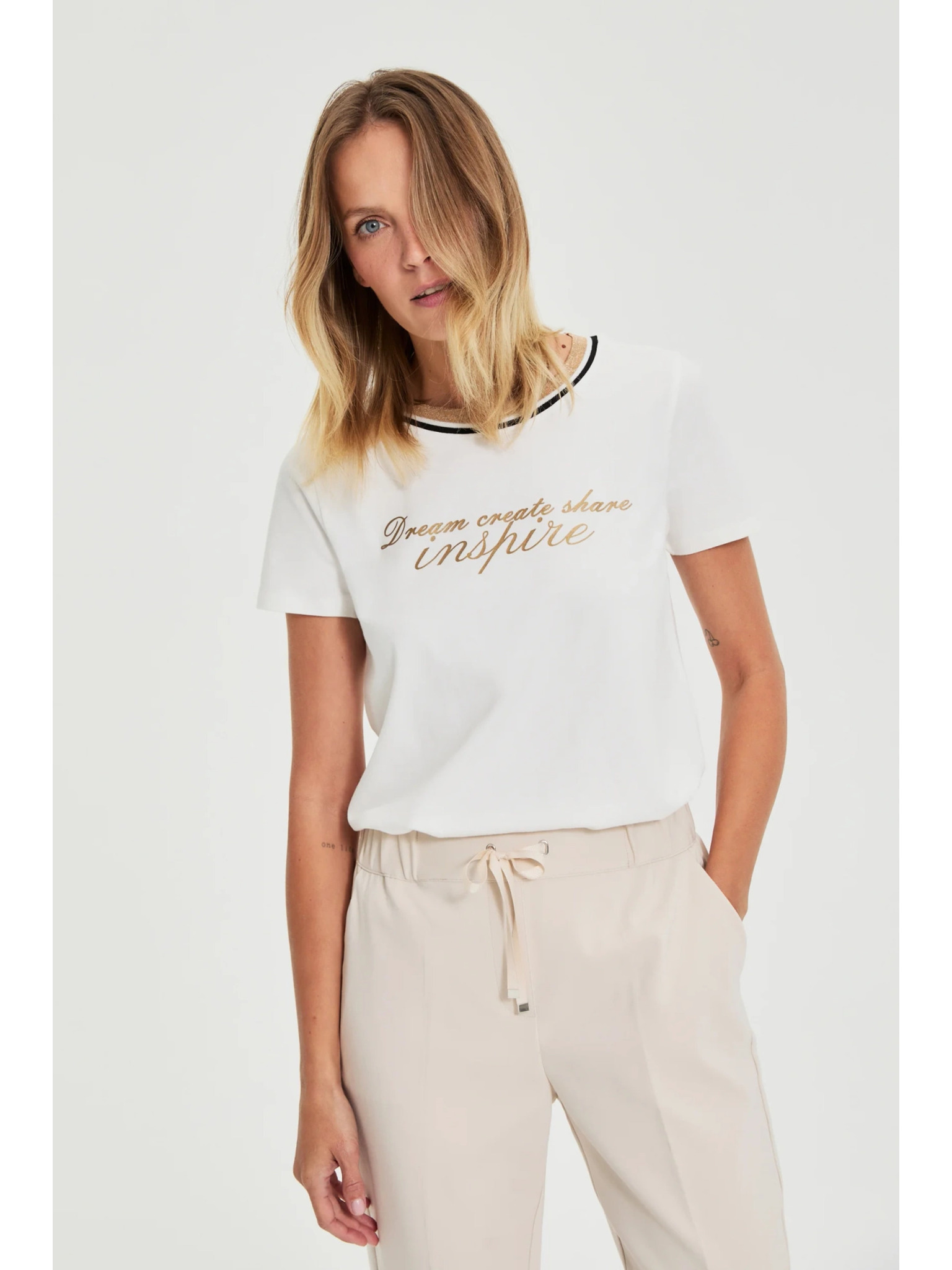 Tričko s potlačou a korálkami biele Moodo