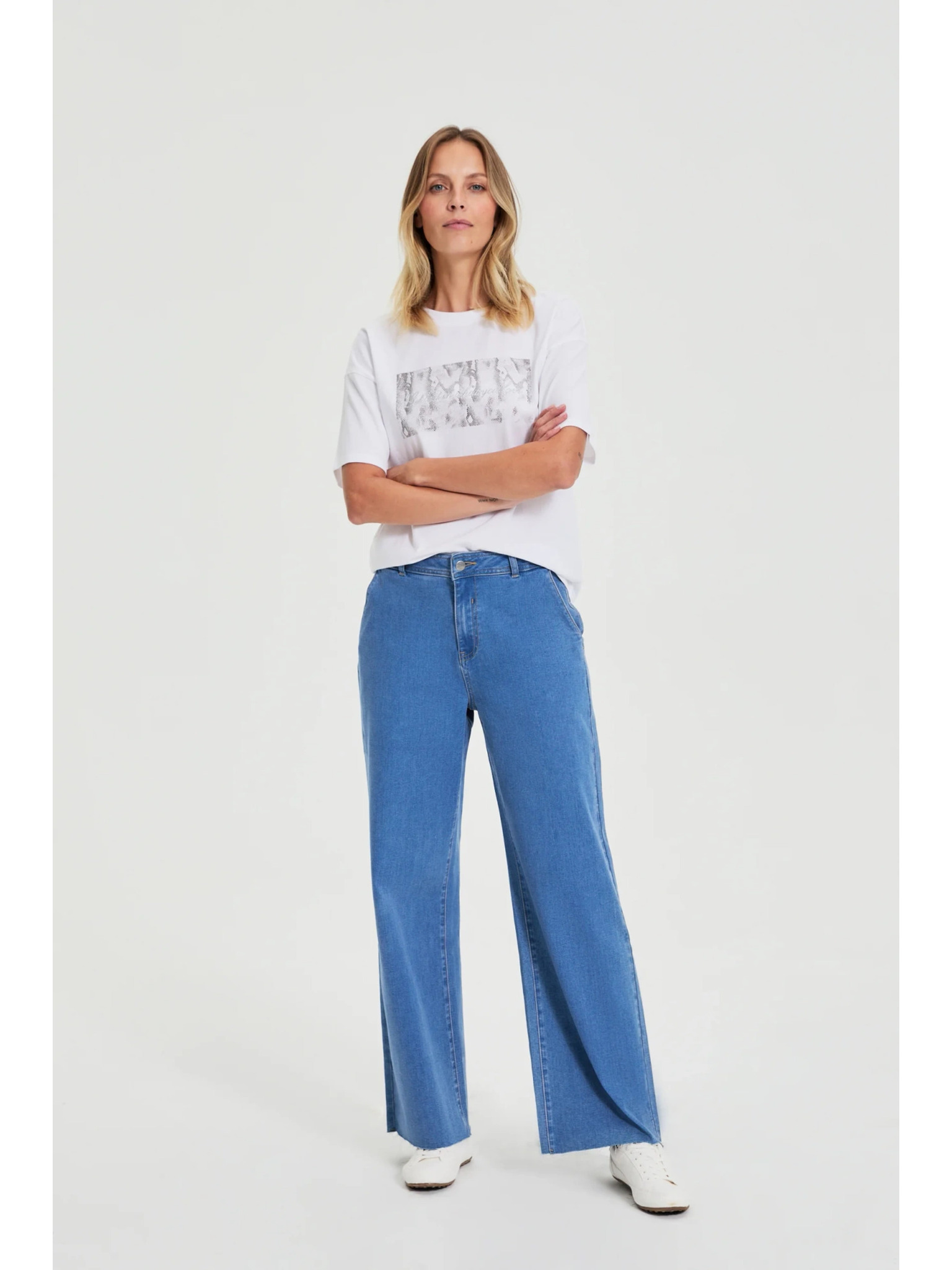 Džínsy so širokými nohavicami modré Moodo