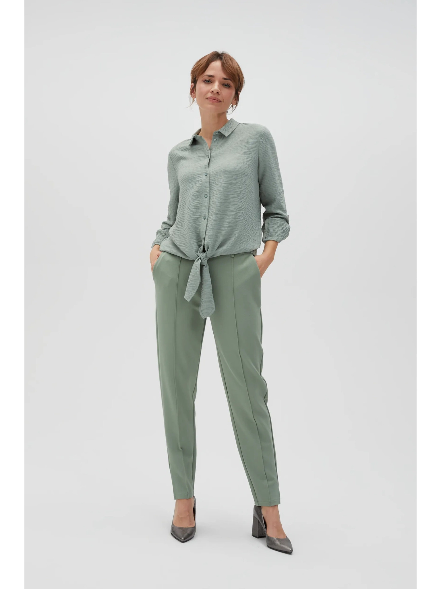 Olivová košeľa Moodo so zaväzovaním
