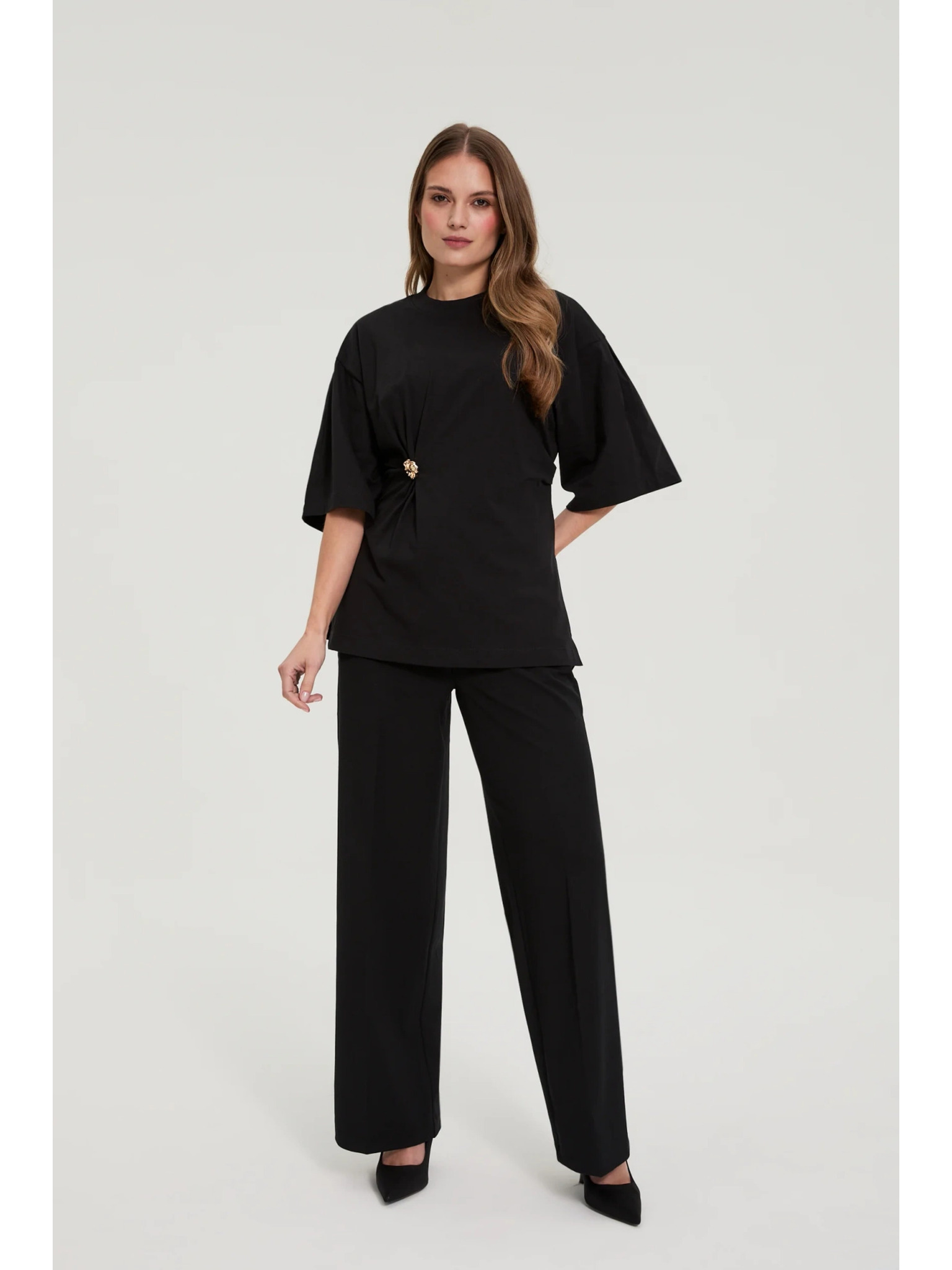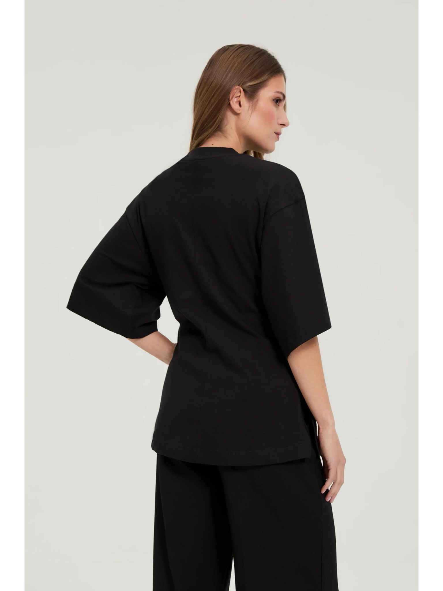 Bavlnená blúzka s ozdobným gombíkom čierna Moodo