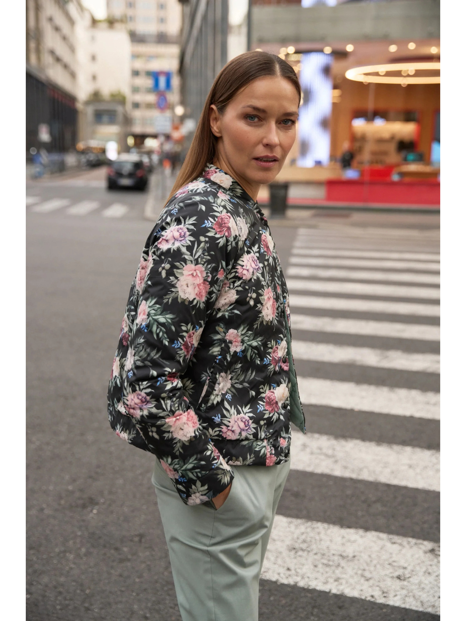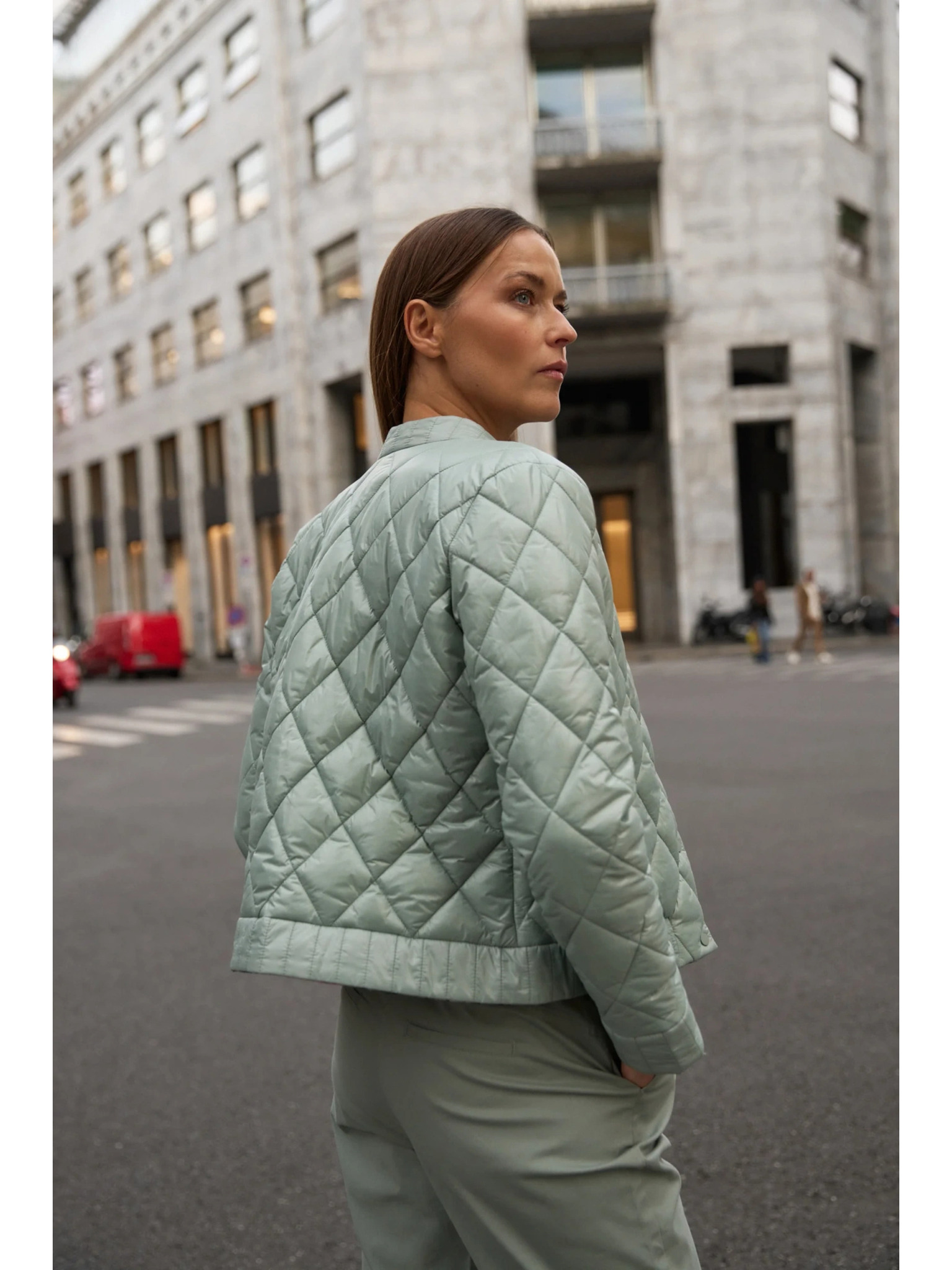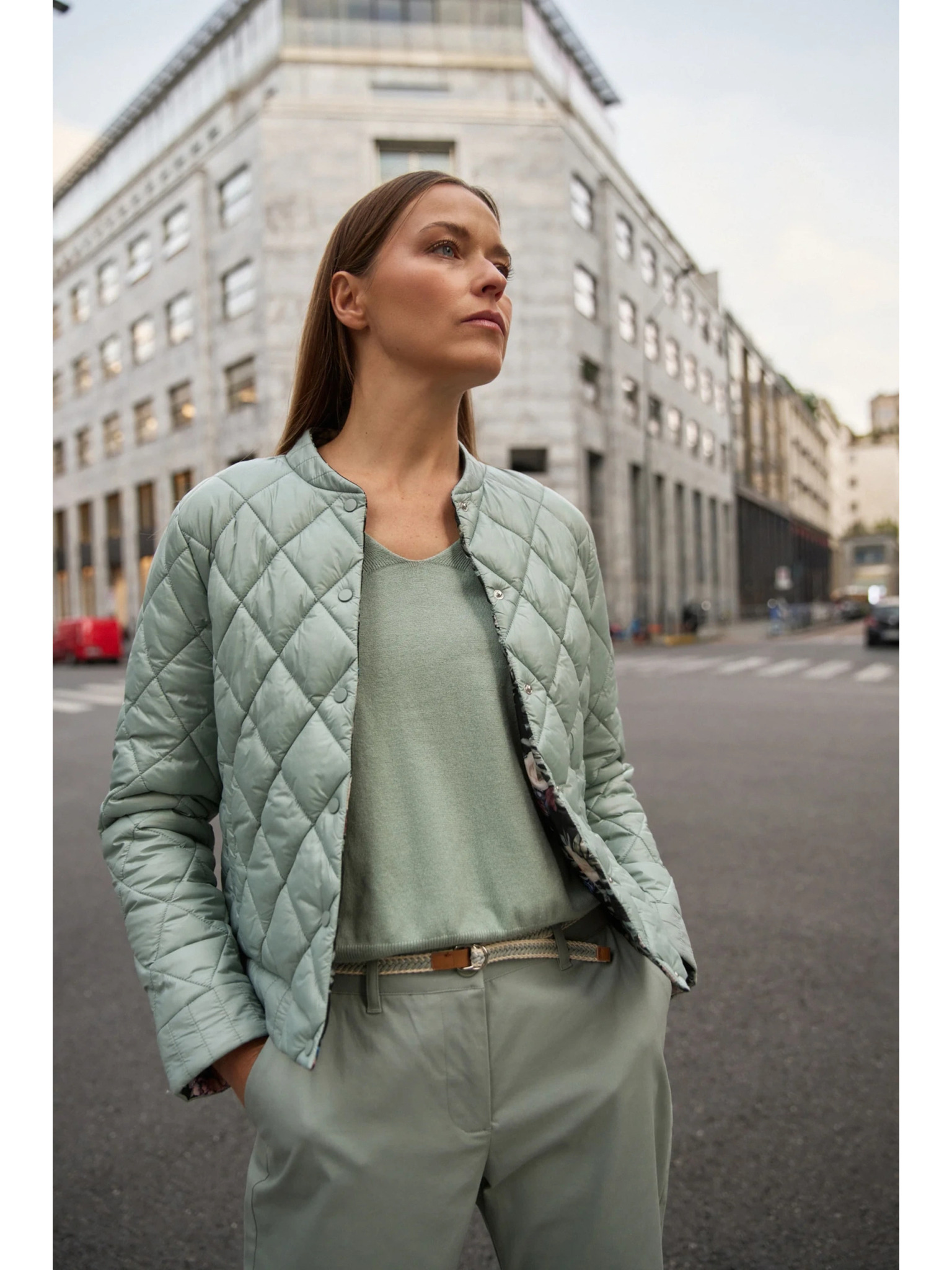 Obojstranná prešívaná olivová bunda Moodo