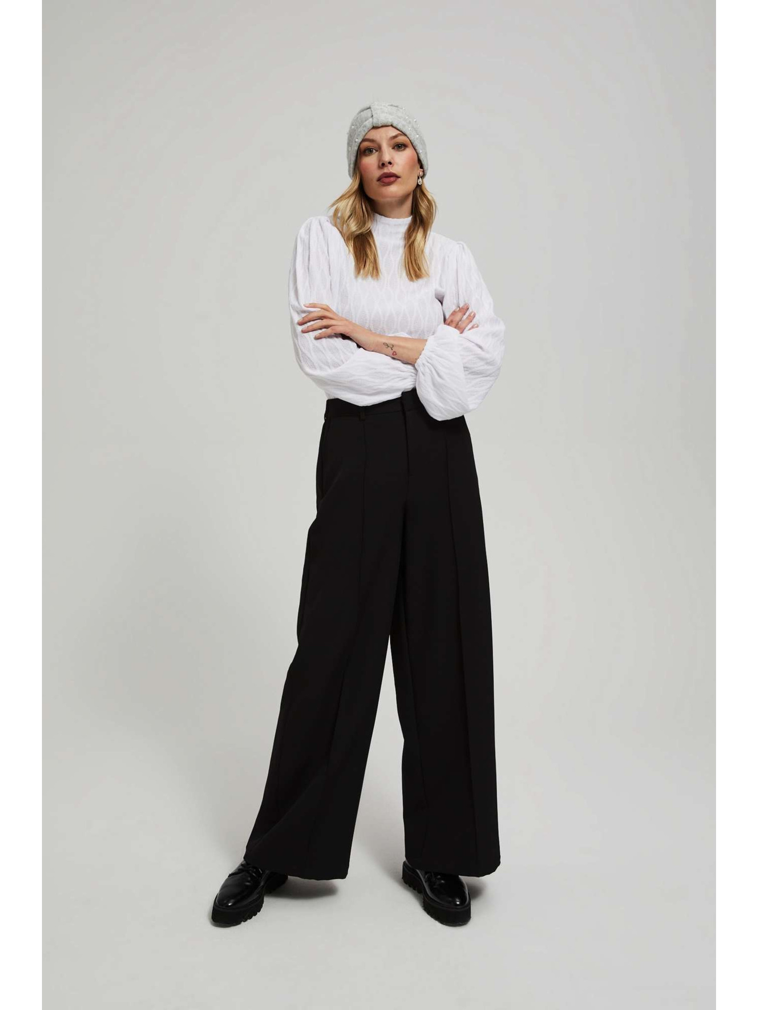 Teplá pletená čelenka do vlasov sivá Moodo