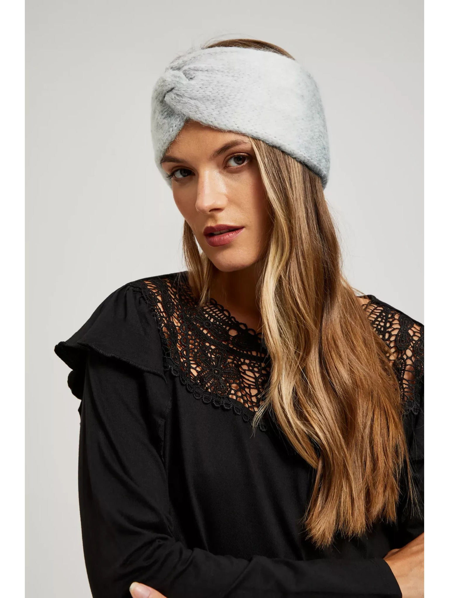 Pletená sivá čelenka Moodo