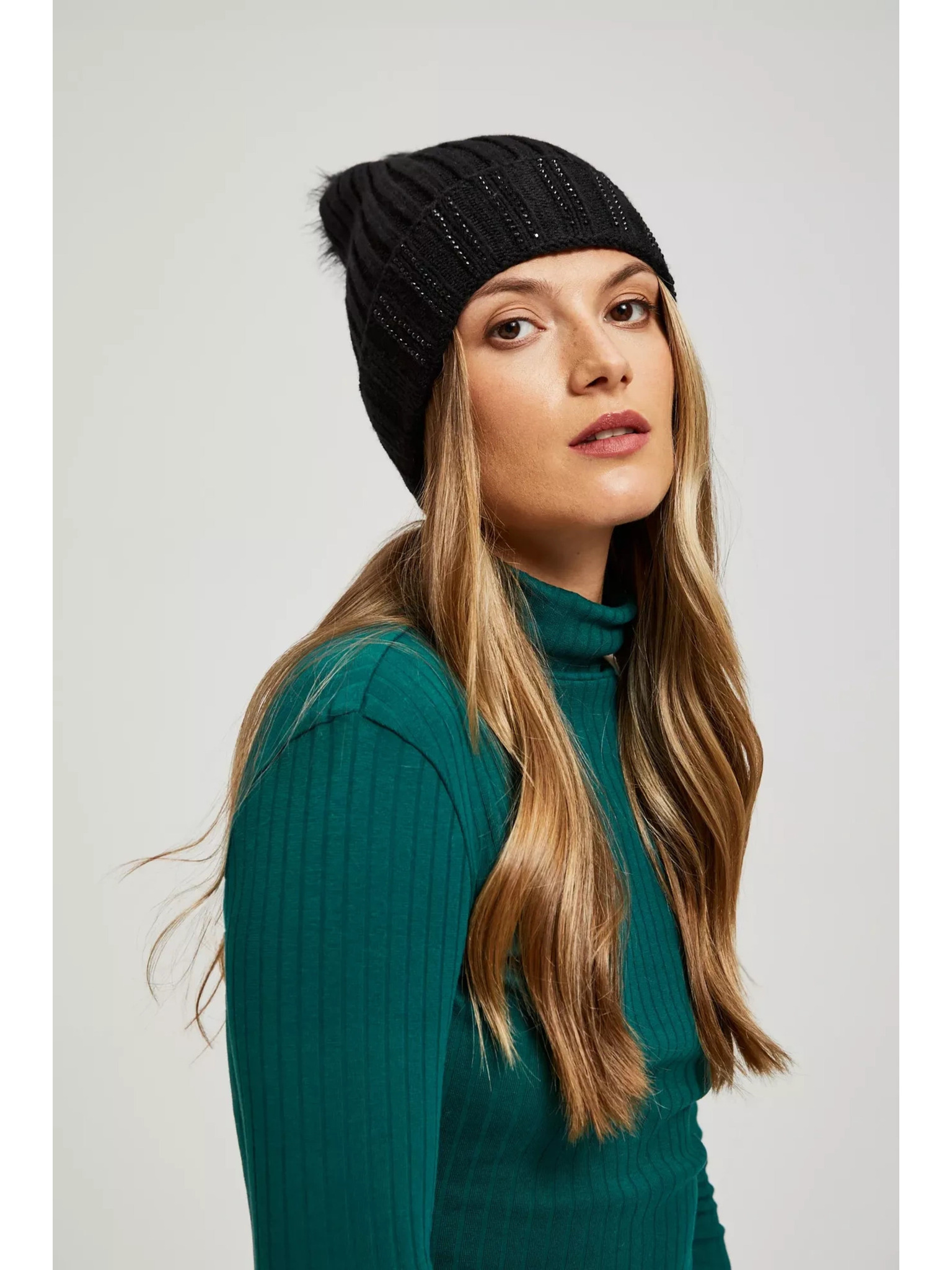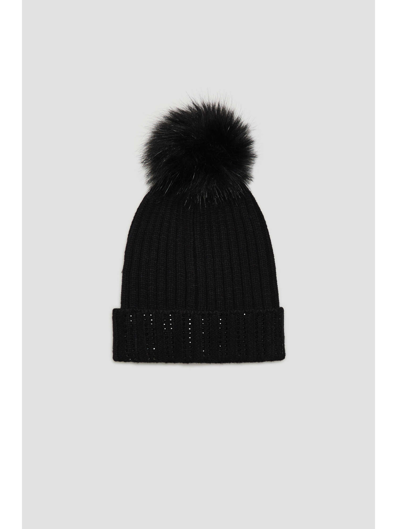 Čiapka s brmbolcom a korálkami čierna Moodo