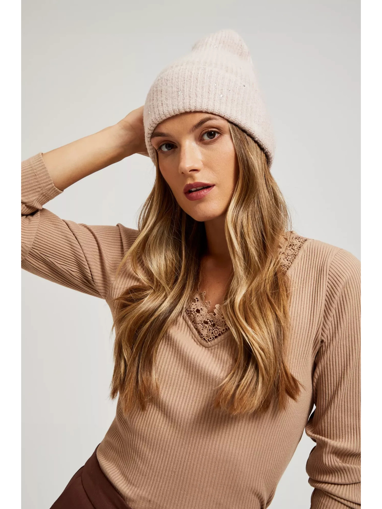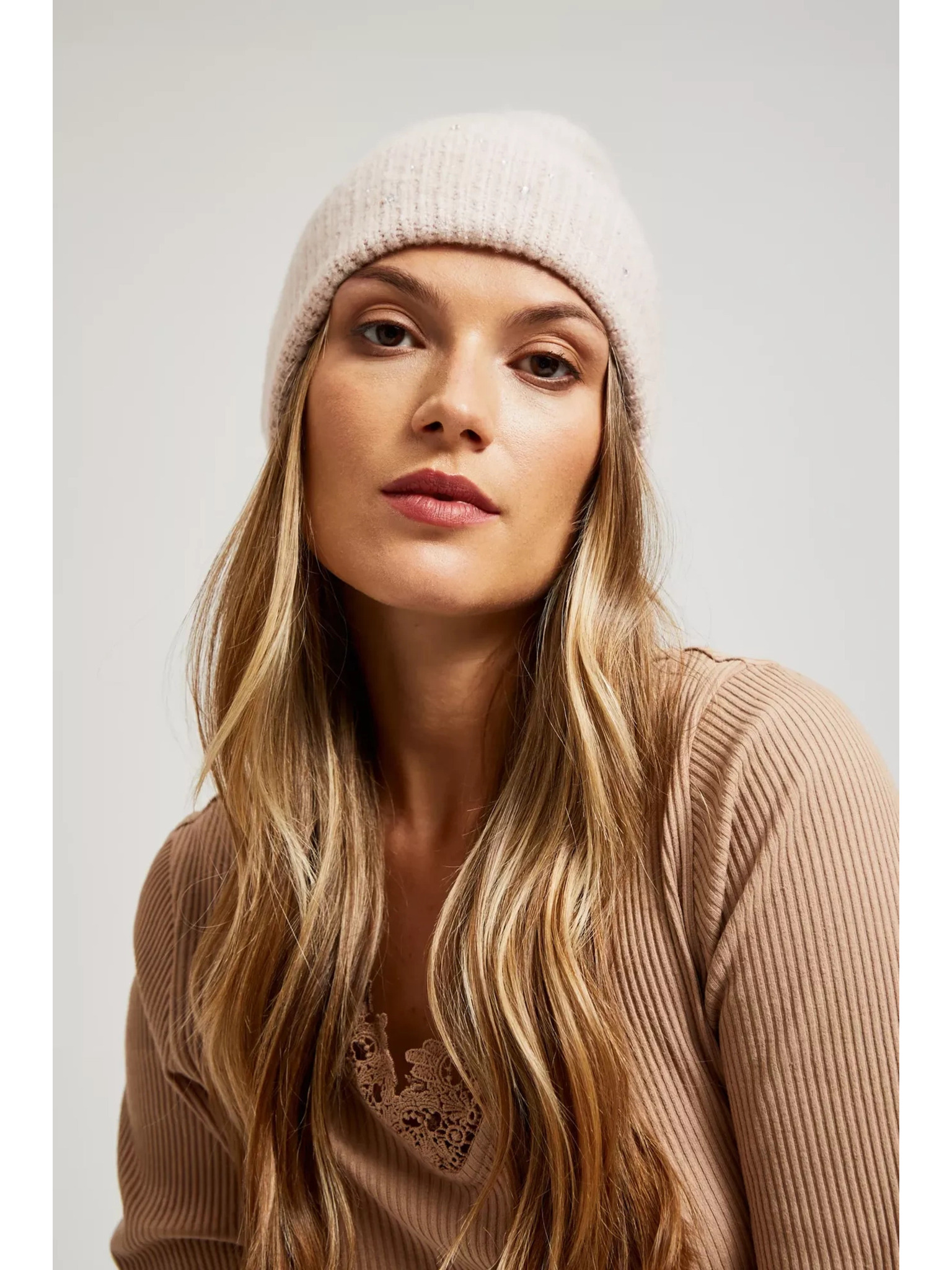 Rebrovaná čiapka béžová Moodo