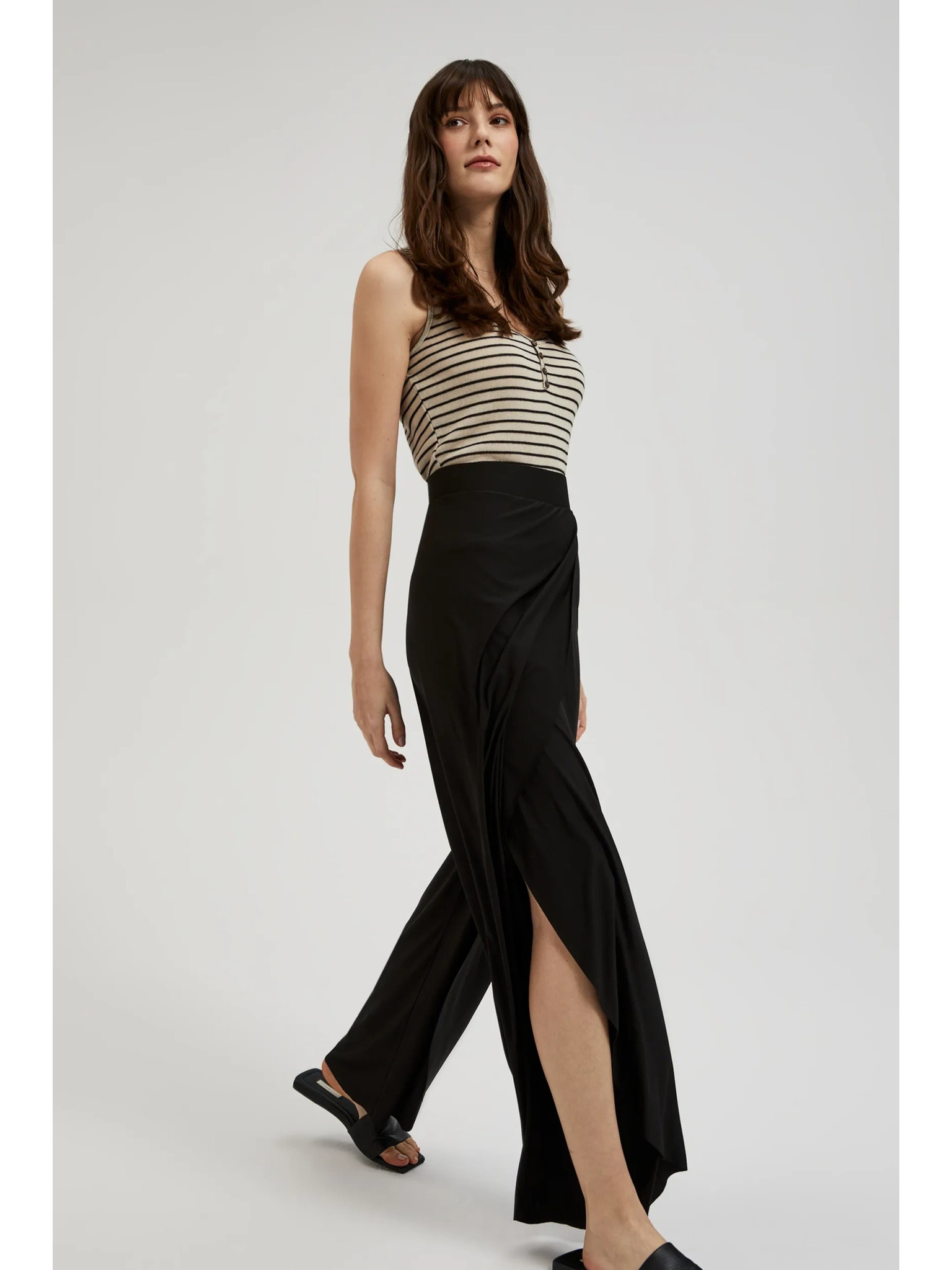 Elegantné čierne nohavice do záhybu Moodo