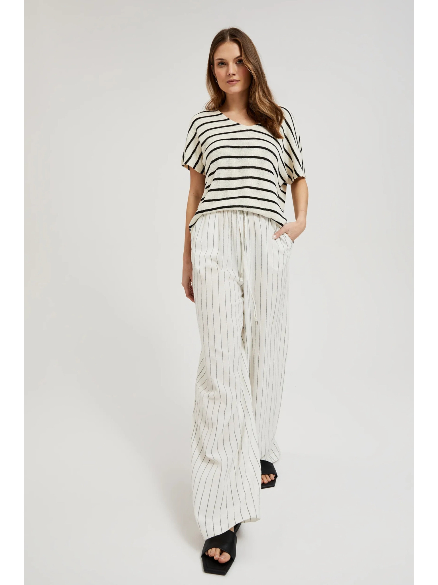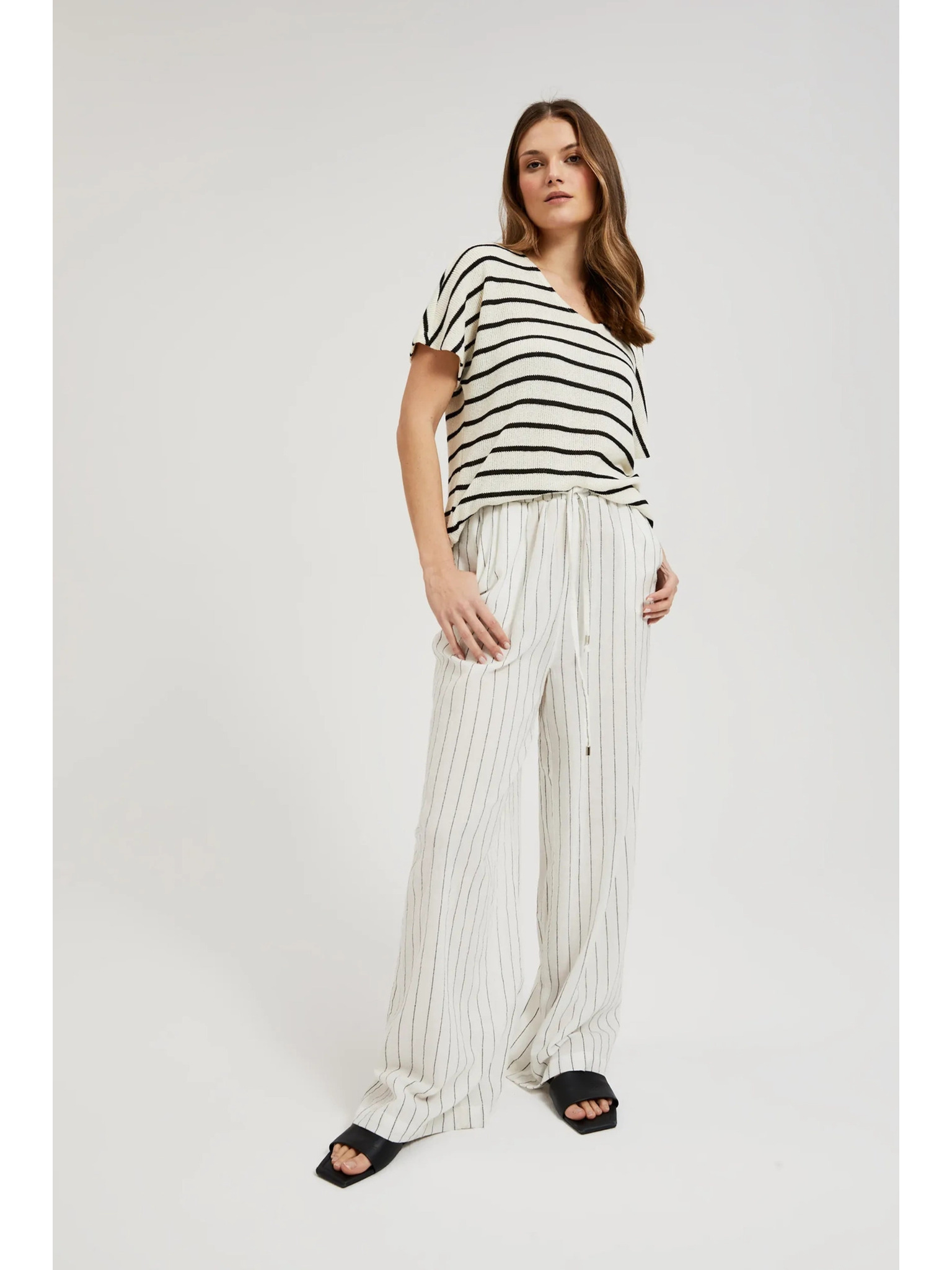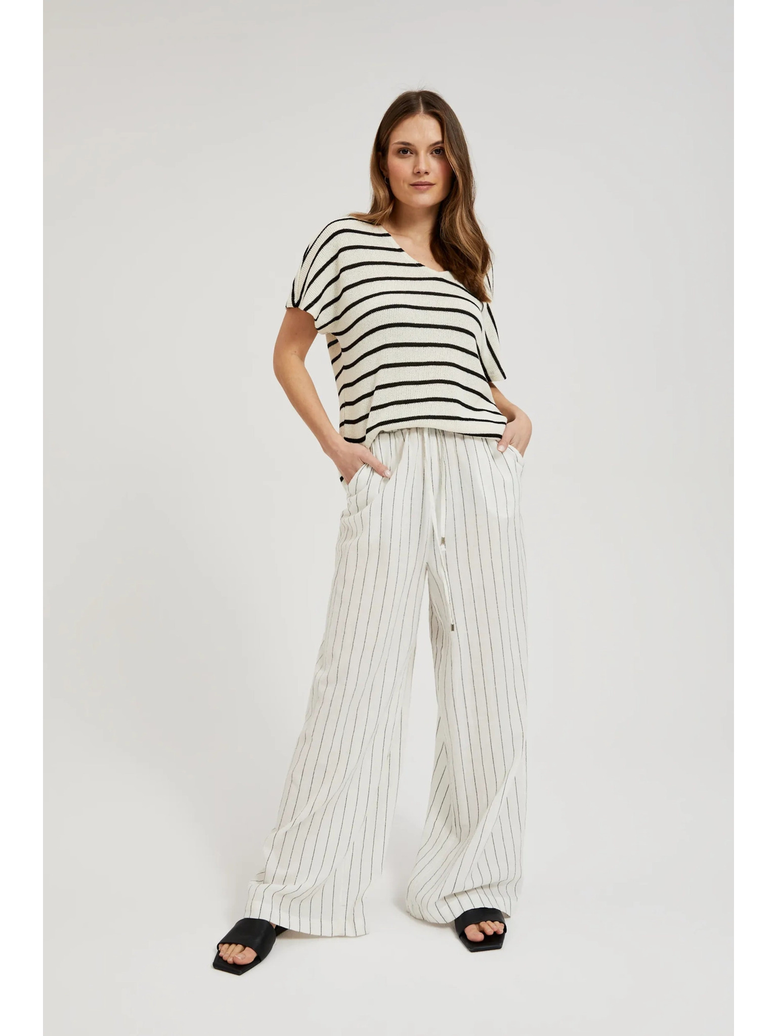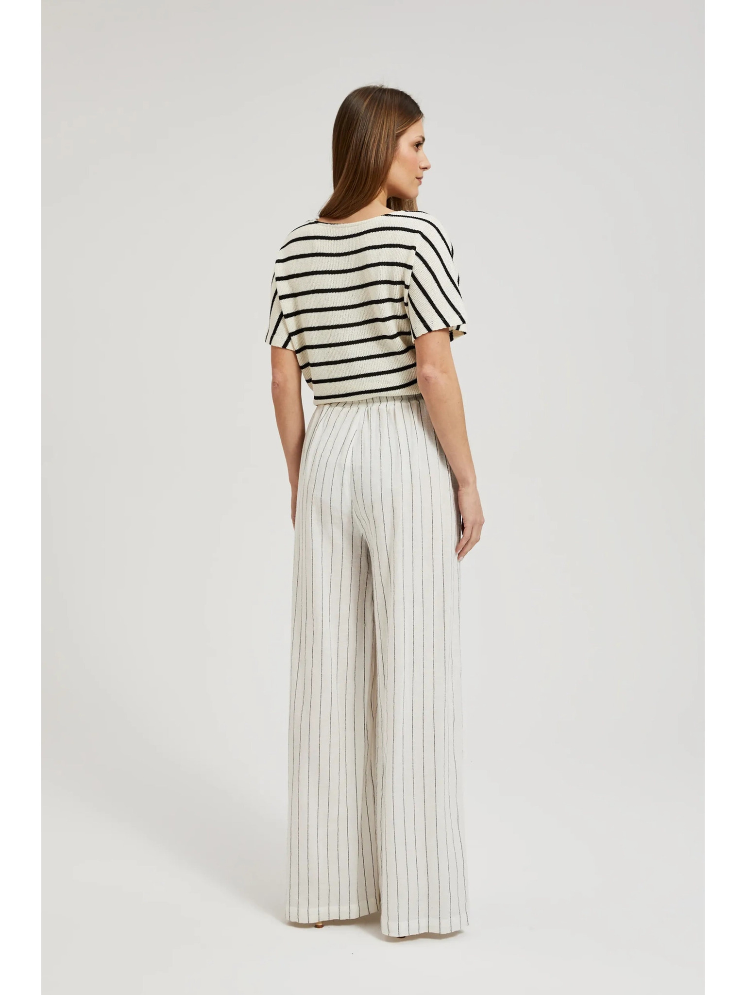 Ľanové nohavice pruhované biele Moodo