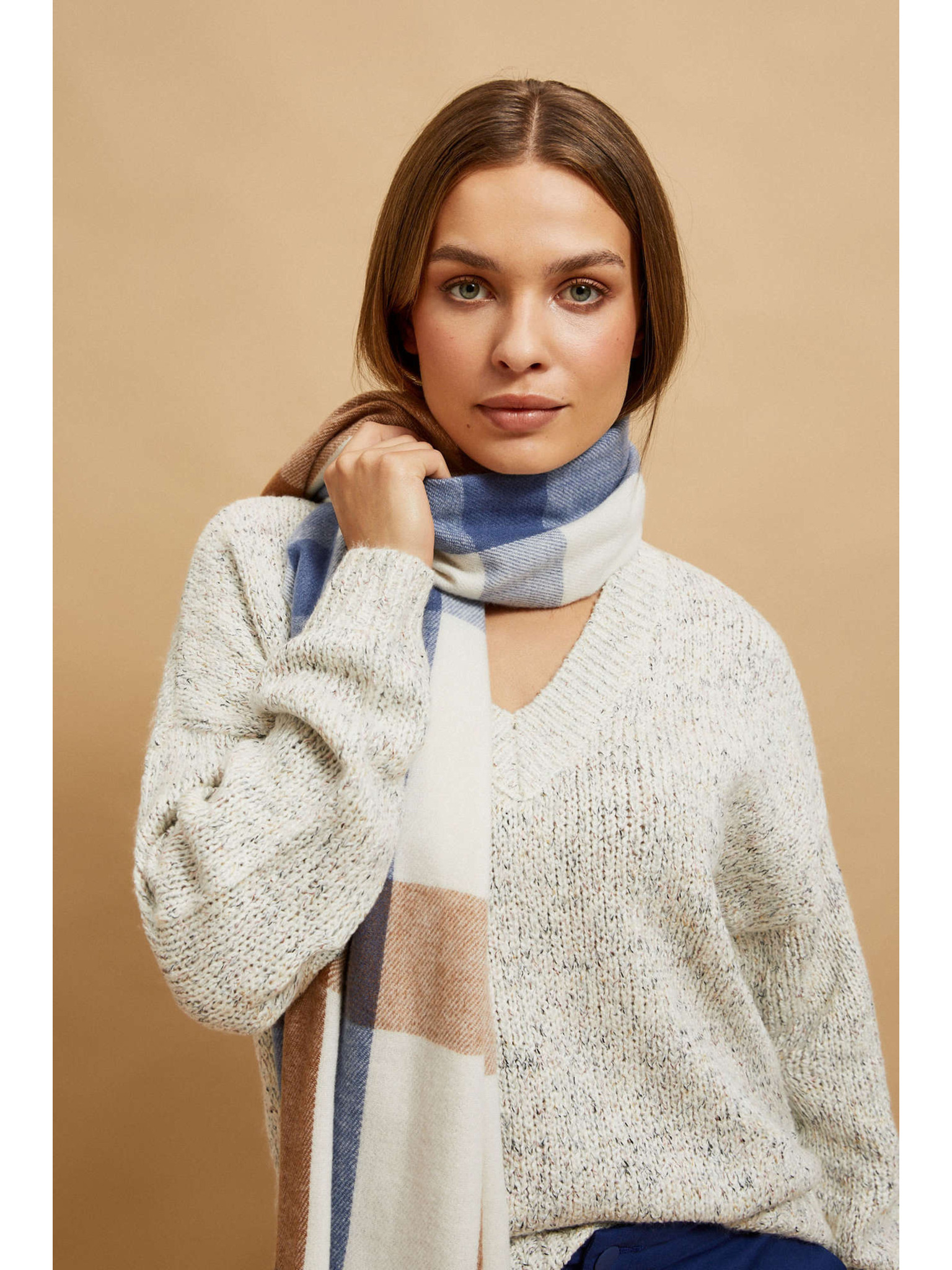 Šál v kostke piesočný Moodo