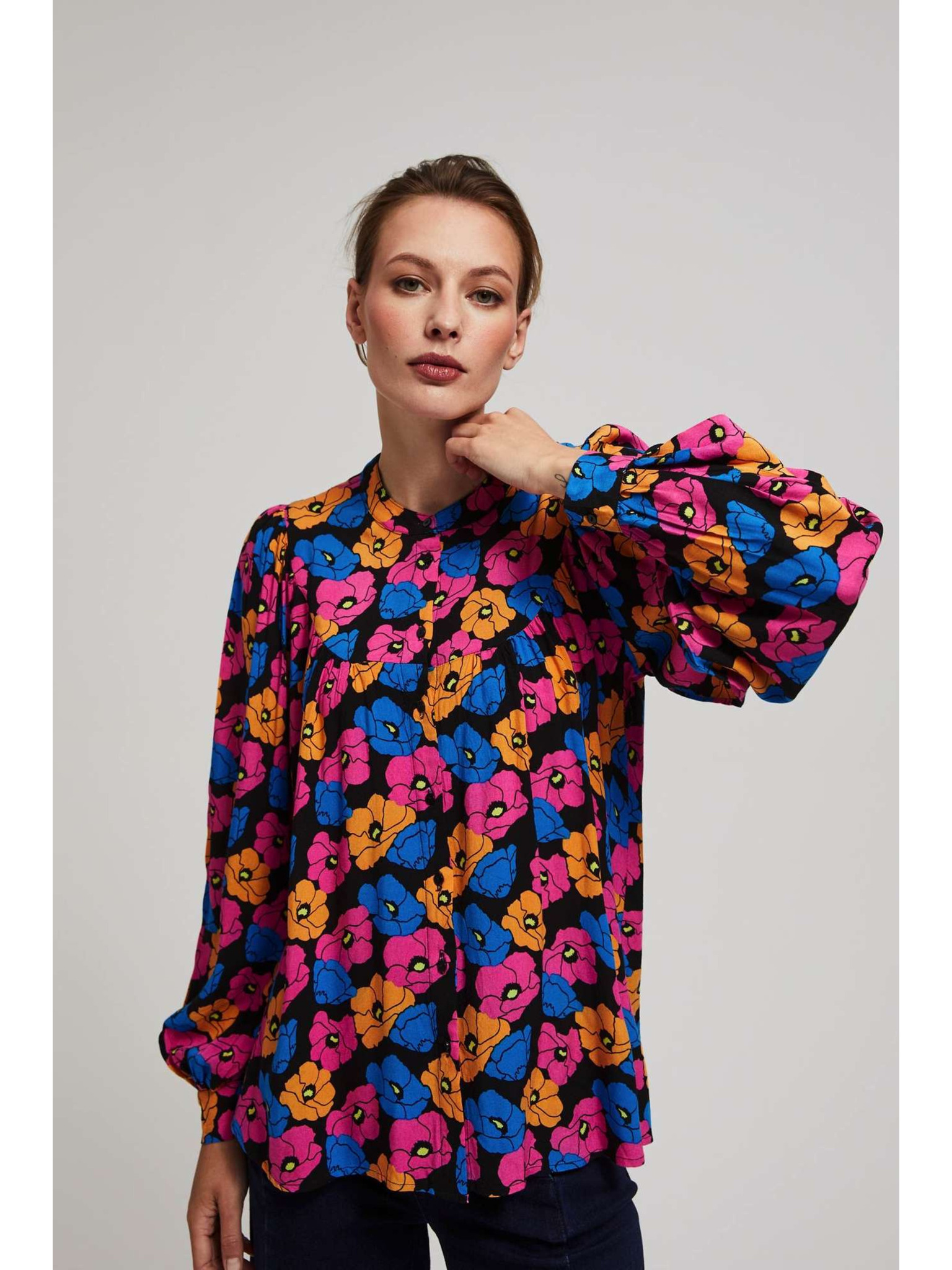 Čierna dámska blúzka s kvetinovým vzorom ORSAY