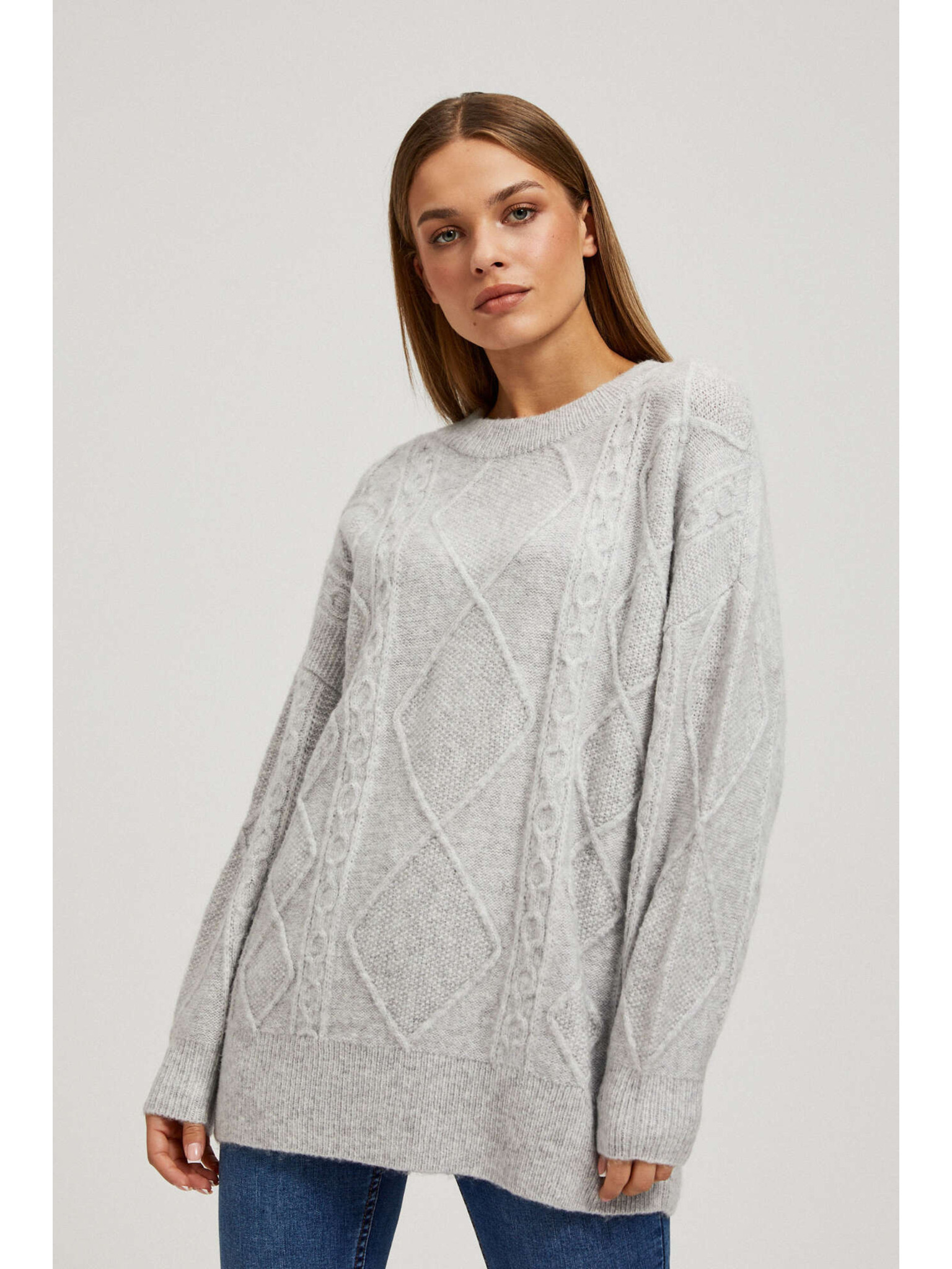 Sveter s ozdobným pletencom svetlo sivý Moodo