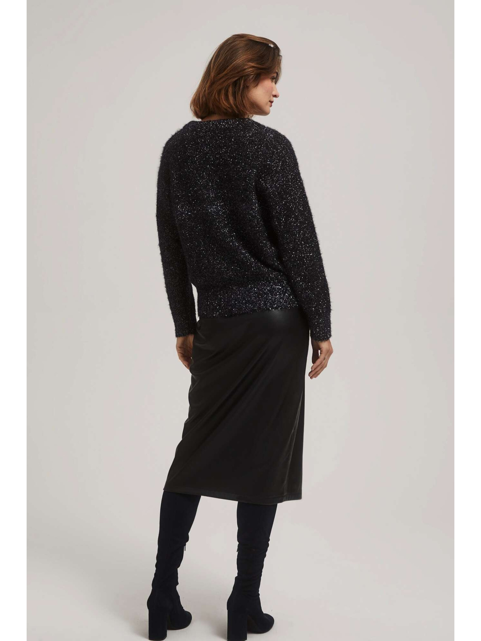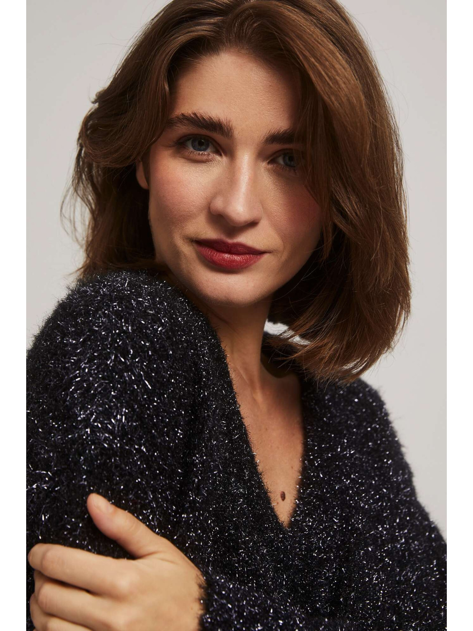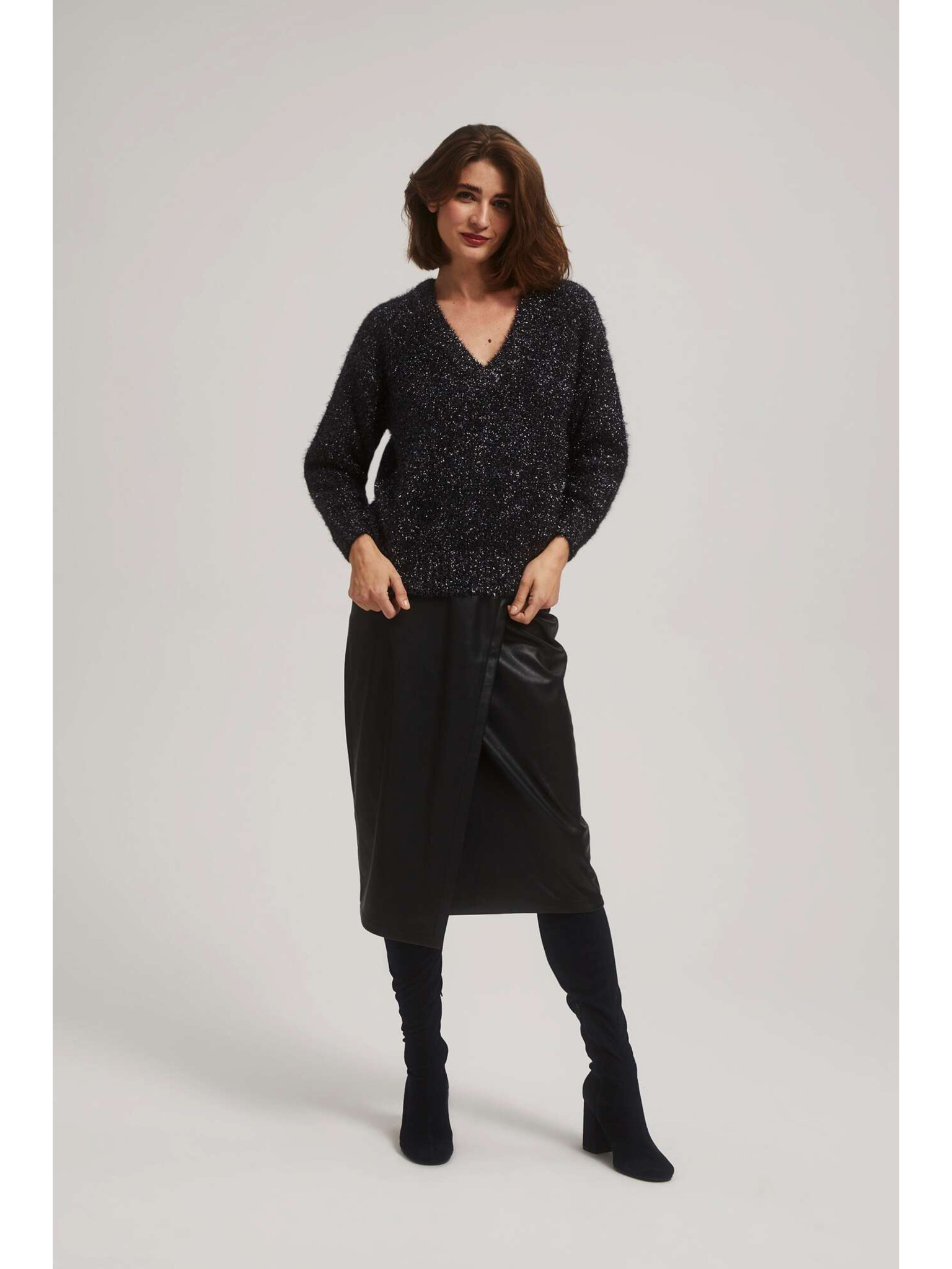 Sveter s výstrihom do V a metalickou niťou Moodo